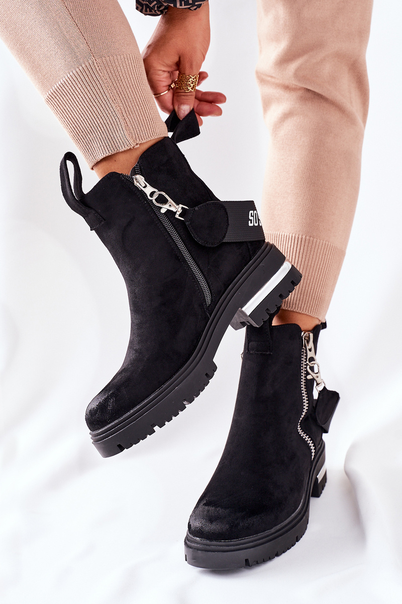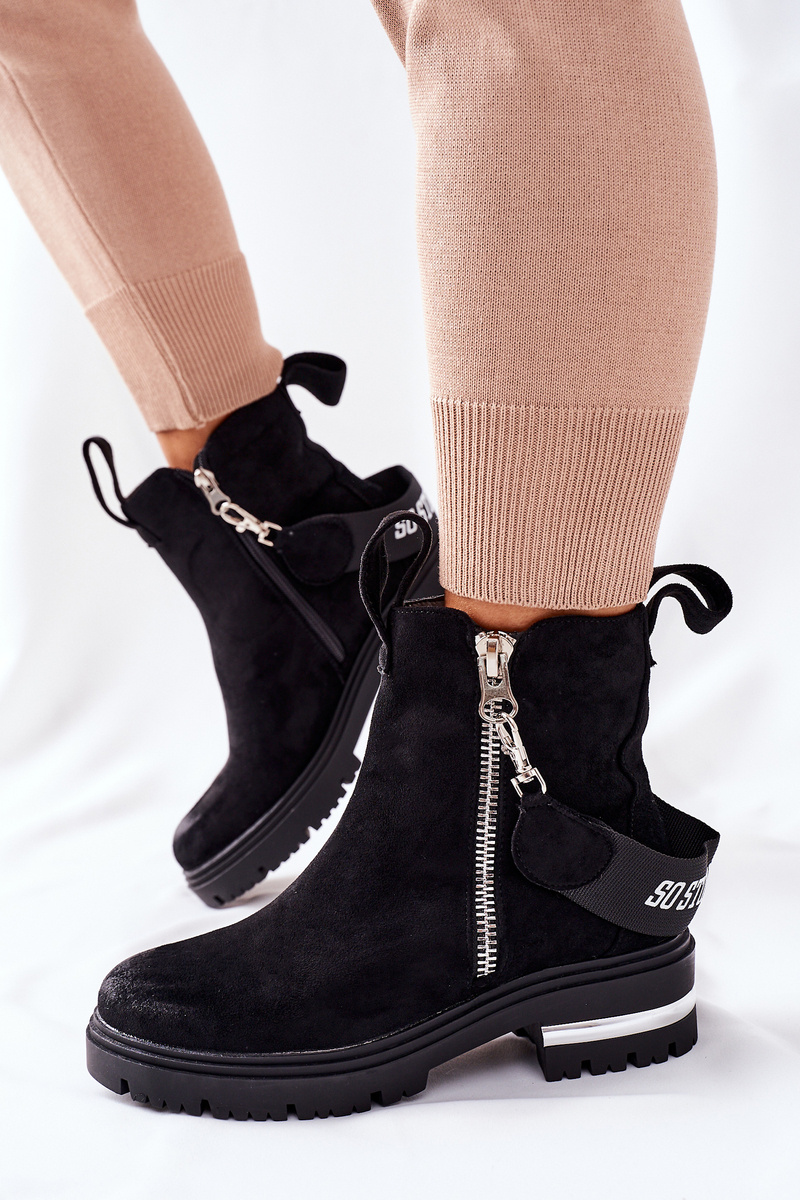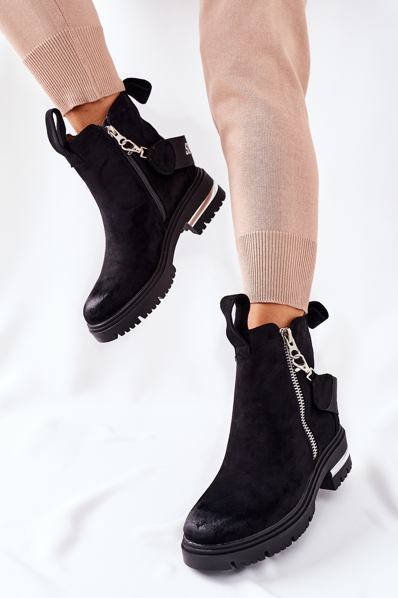 Ocieplane Botki Z Suwakiem Czarne Cortona