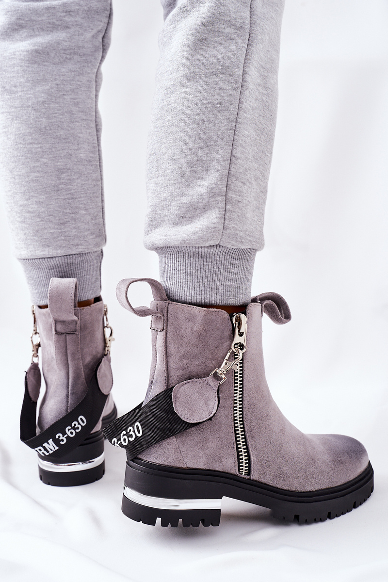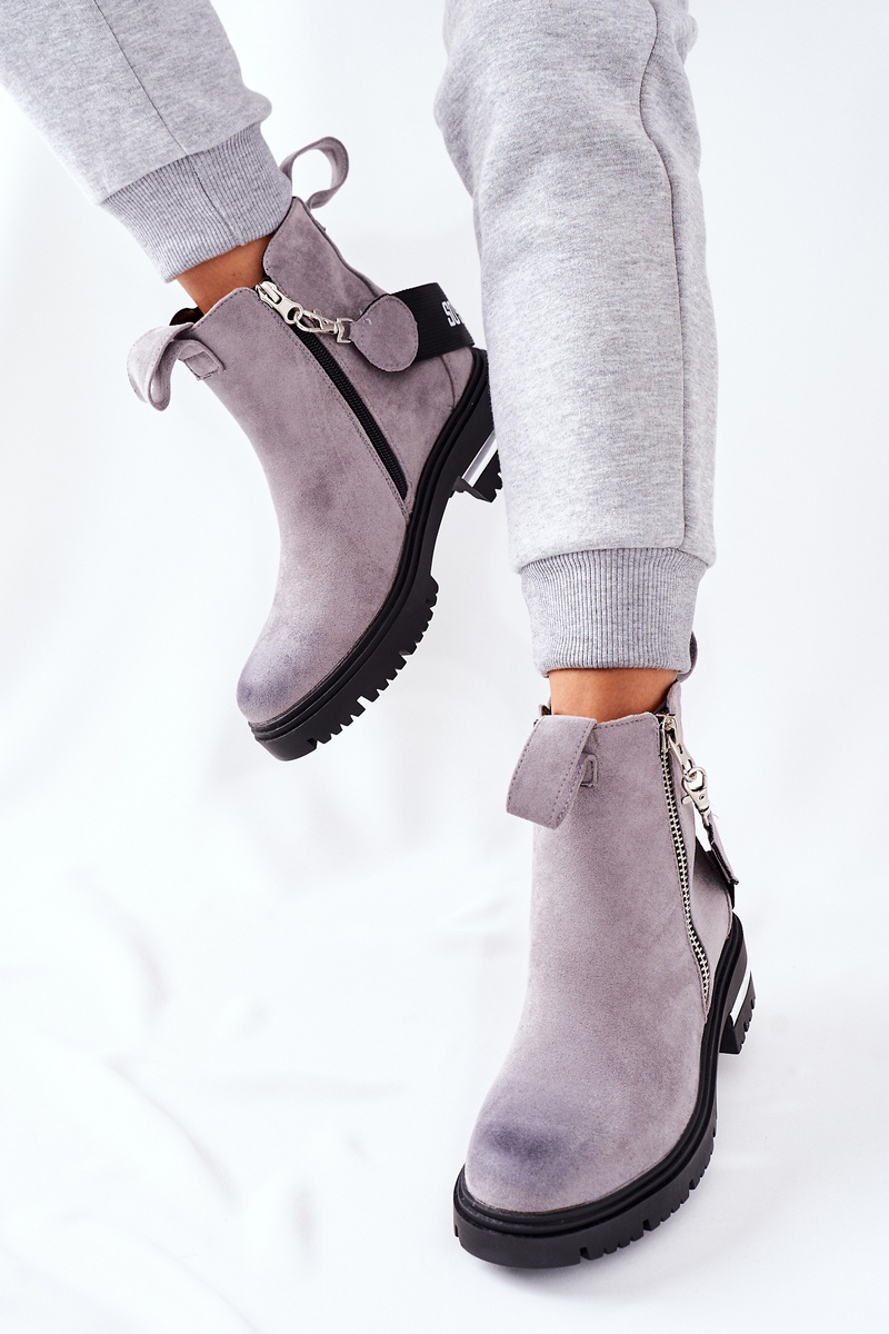 Ocieplane Botki Z Suwakiem Szare Cortona