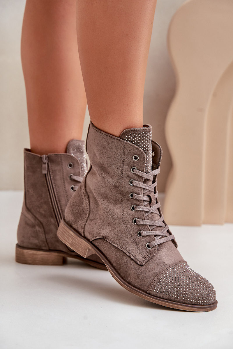 Ocieplane Botki Ze Zdobieniem Płaski Obcas Eko Zamsz Brązowe Ellieo