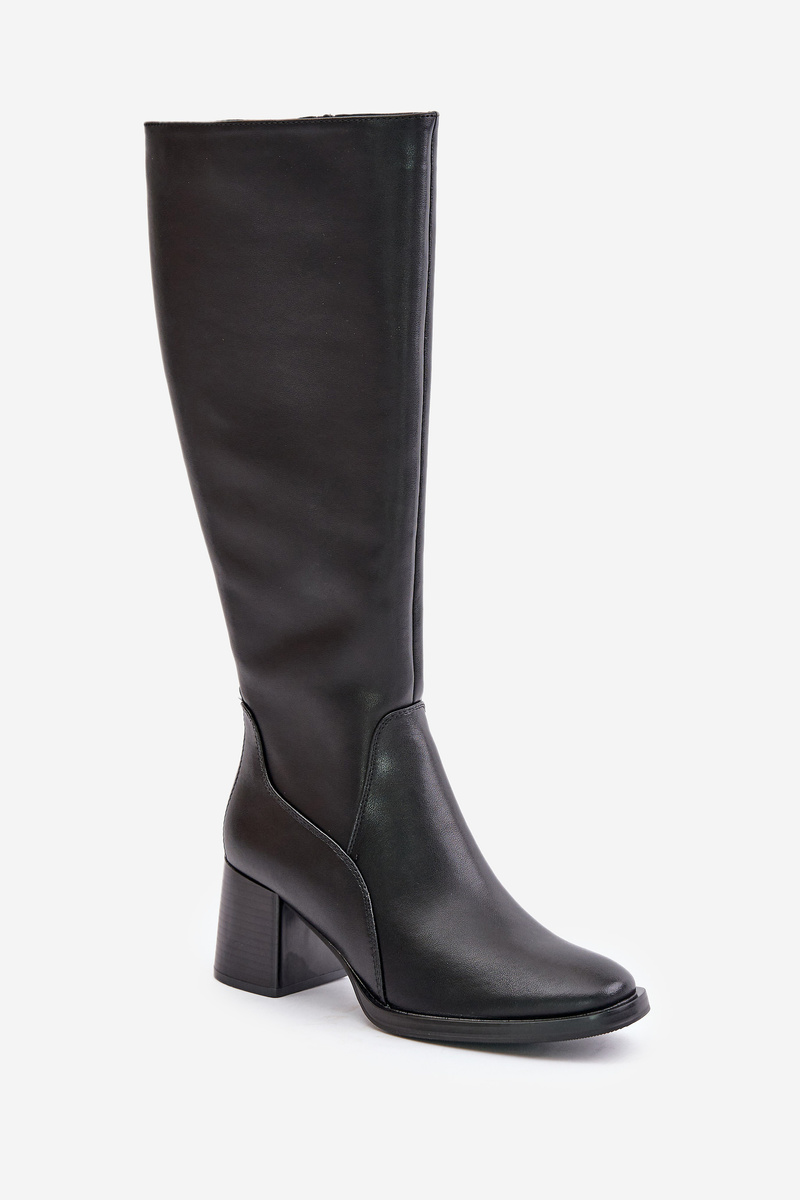 Ocieplane Kozaki Skóra Naturalna Obcas Słupek Na Zamek Czarne Sergio Leone KZ231-S