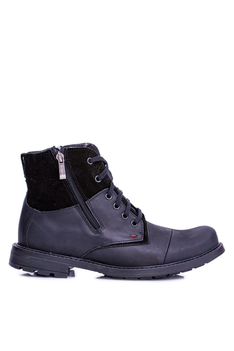 Ocieplane Skórzane Botki Męskie Z Zamkami Czarne KOMODO 871