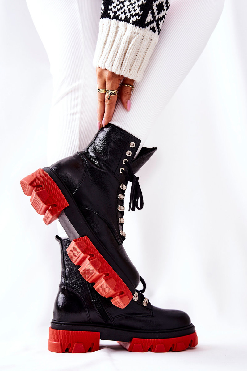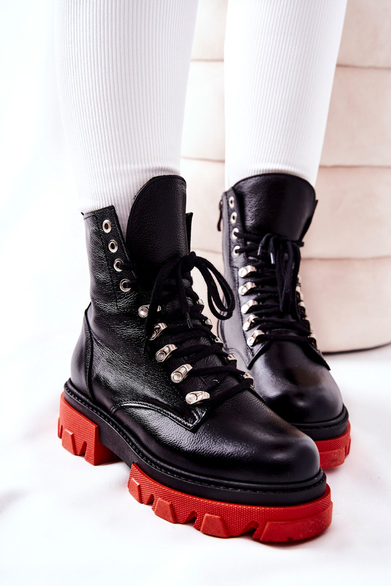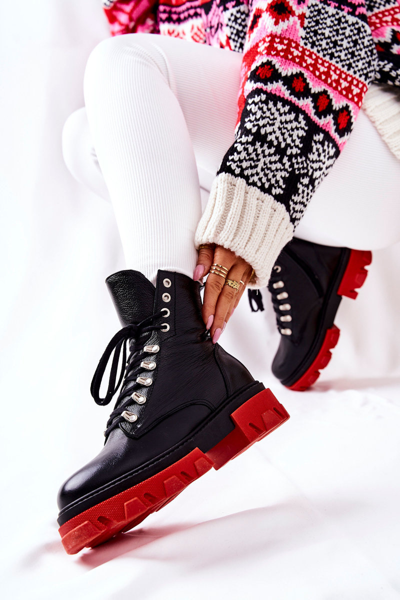 Ocieplane Skórzane Botki Workery Wiązane Czarne Kelley