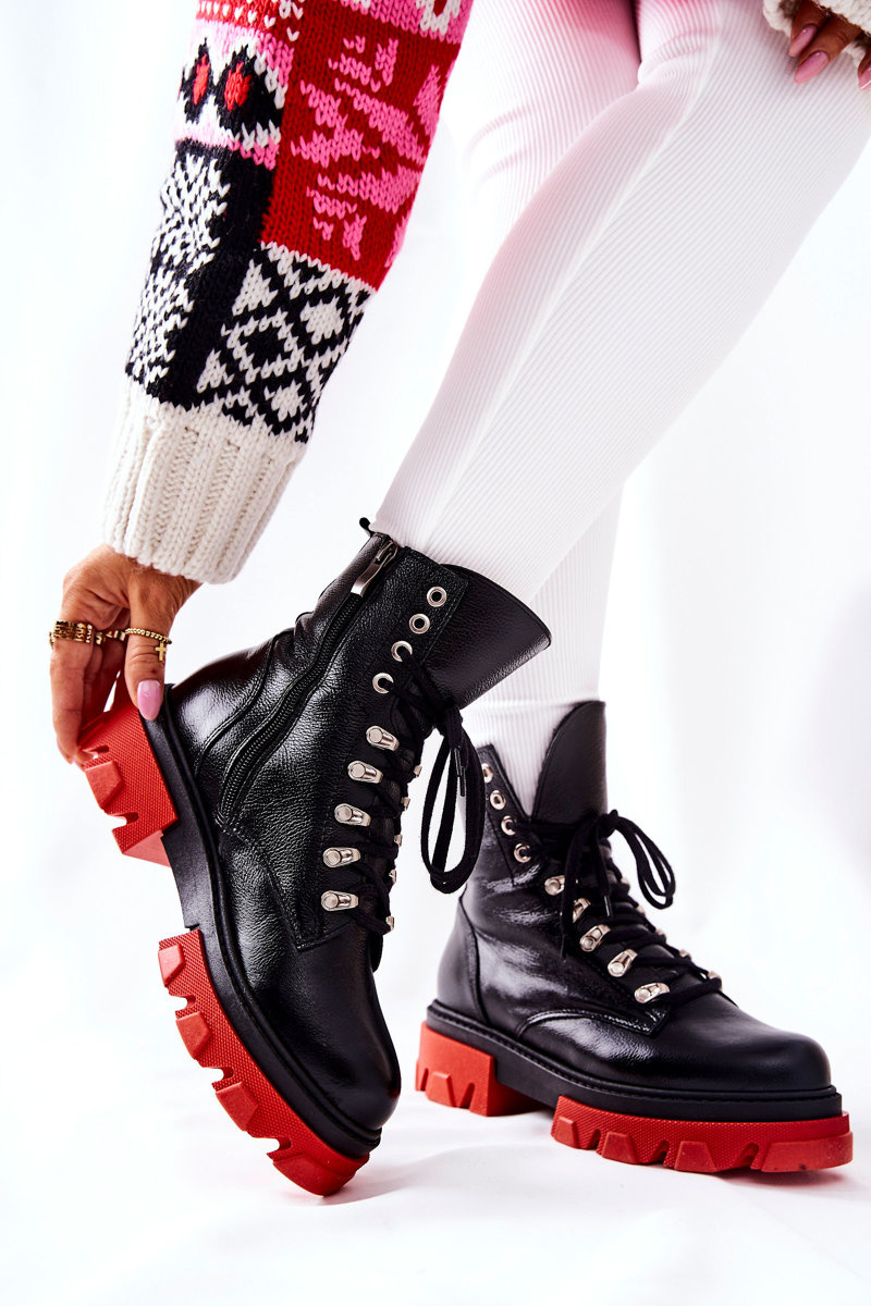 Opinie o Ocieplane Skórzane Botki Workery Wiązane Czarne Kelley
