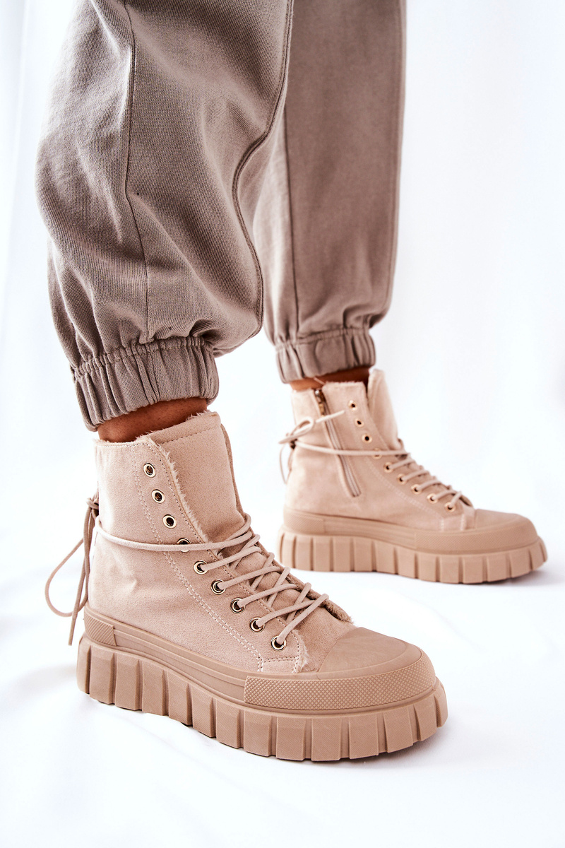 Ocieplane Trampki Na Platformie Beżowe Marlow