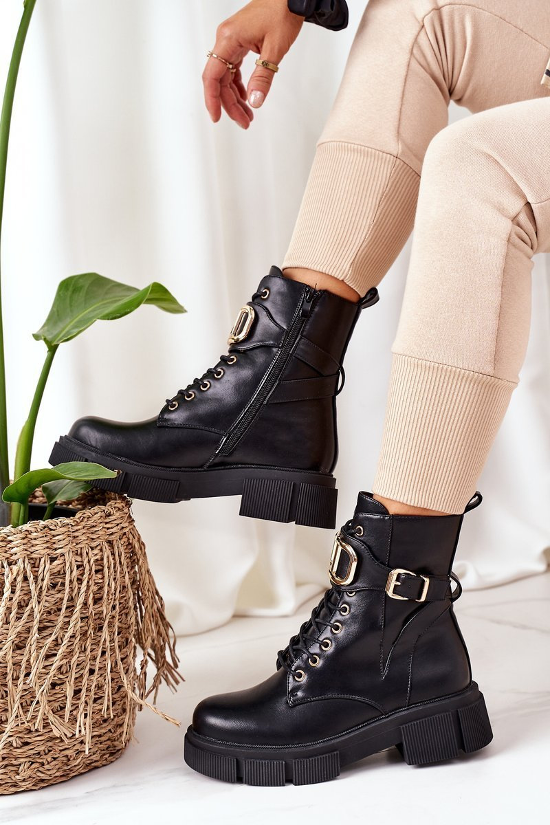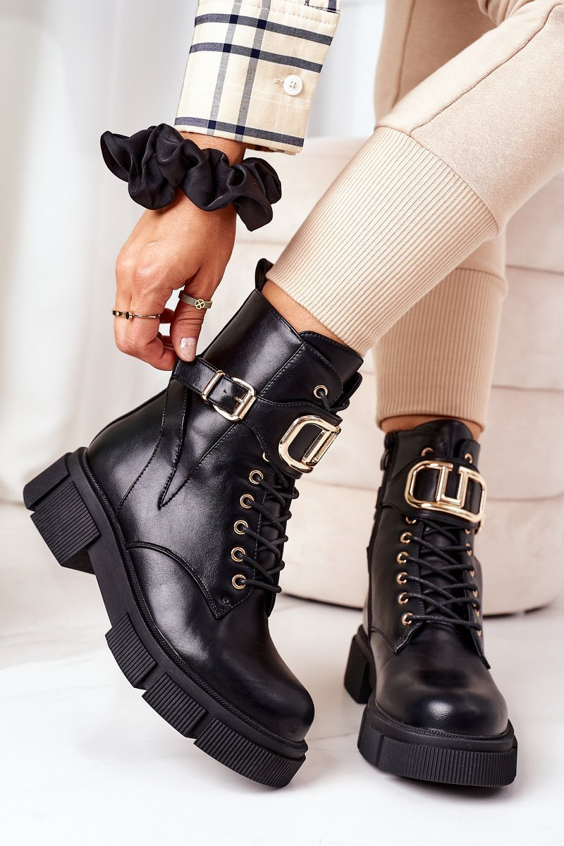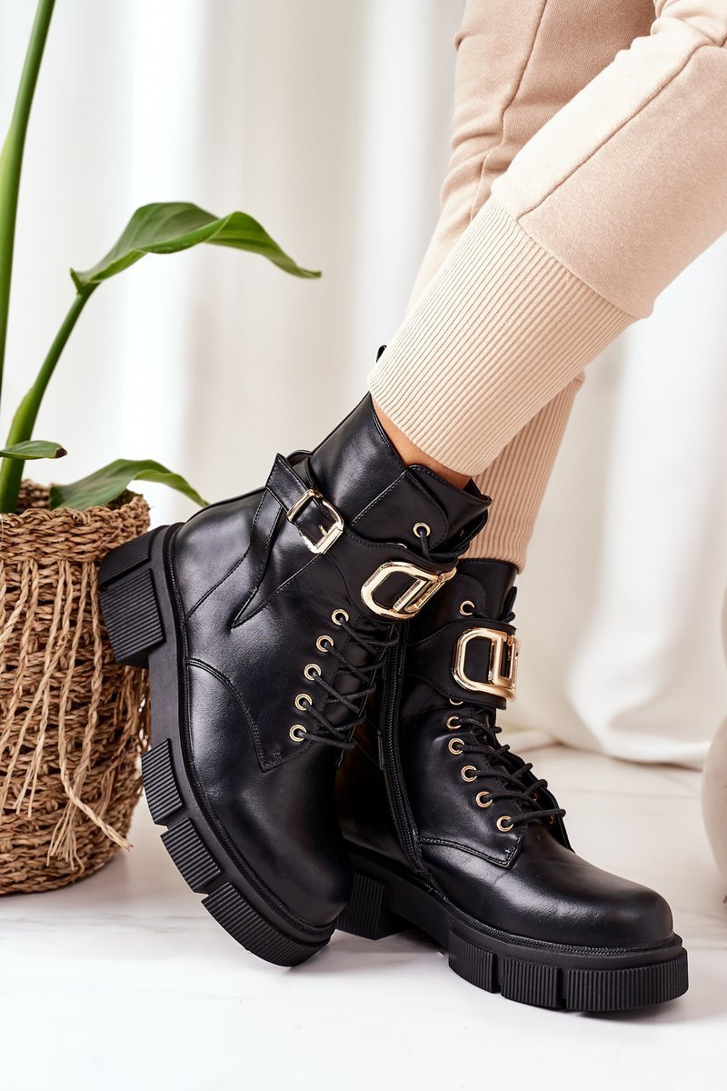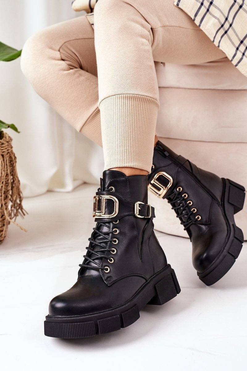 Ocieplane Workery Ze Złotą Klamrą Czarne Maybelle