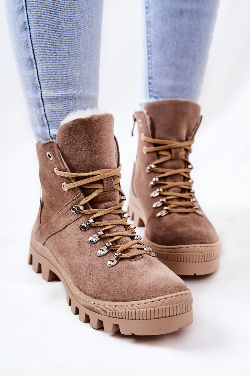 Ocieplane Zamszowe Botki Piasek Sandstorm