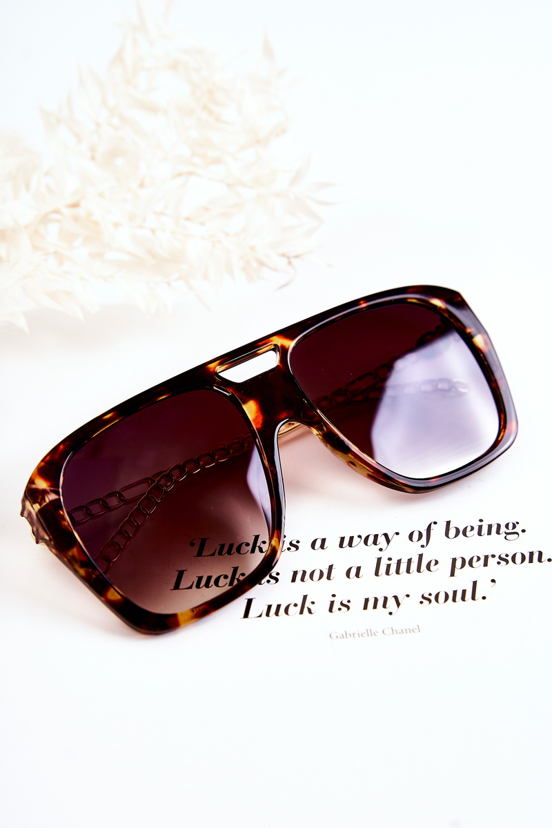 Okulary przeciwsłoneczne dla wielu osób są dodatkiem do stylizacji. Podstawowym ich zadaniem powinna być ochrona przed szkodliwym promieniowaniem UV, ponieważ promienie te mogą być bardzo niebezpieczne dla oczu. Wybierz model, który spełni swoje zadanie! Okulary przeciwsłoneczne zostały wykonane z tworzywa sztucznego. Okulary o fasonie aviator. Zauszniki wykonane z tworzywa sztucznego, cienkie, z imitacją łańcuszka.