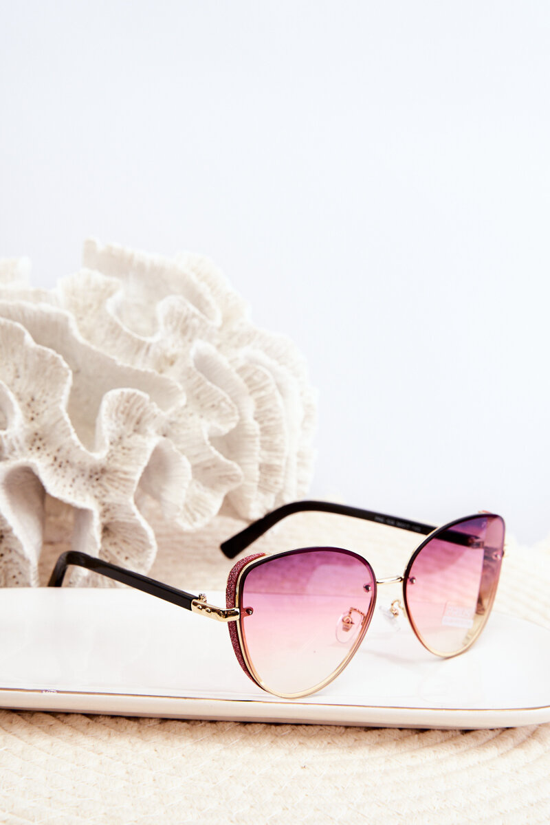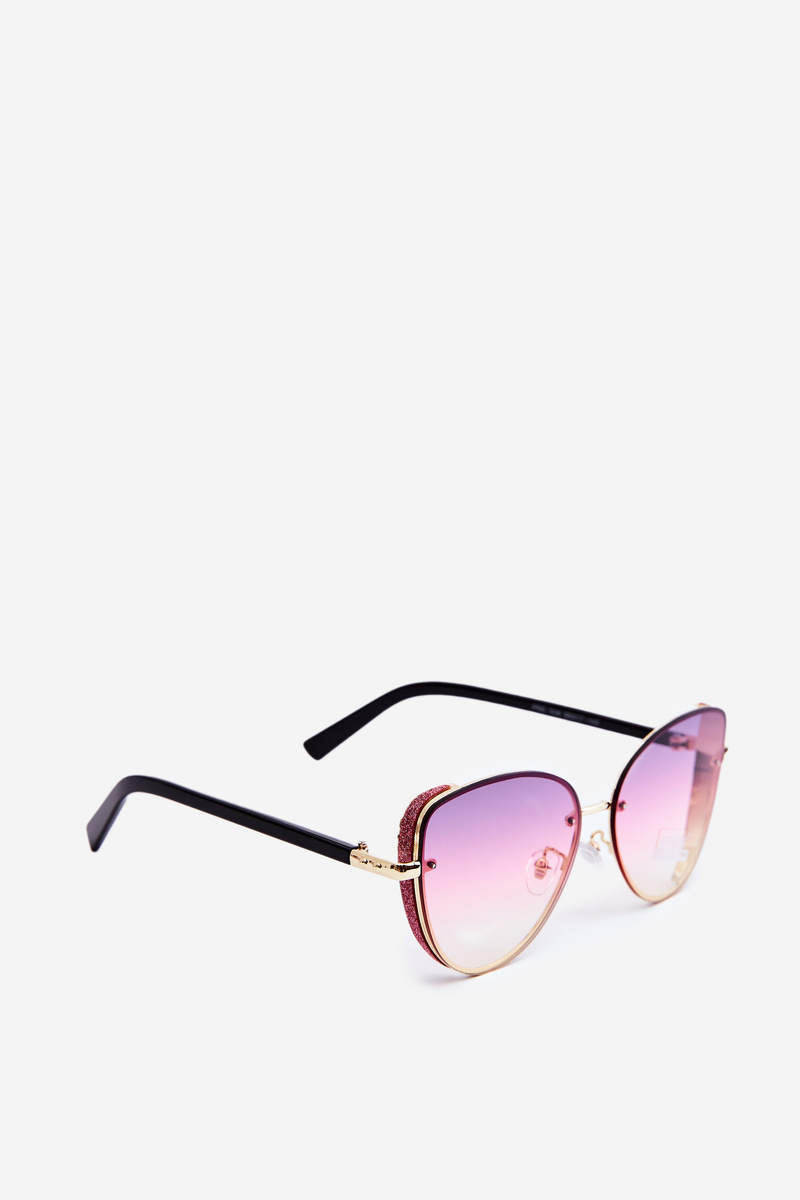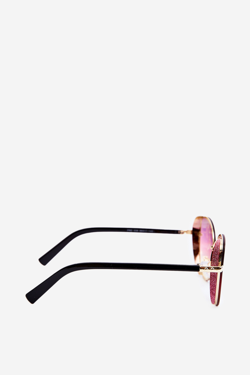 Okulary Przeciwsłoneczne Damskie Brokatowe Wstawki Różowo-Złote UV400