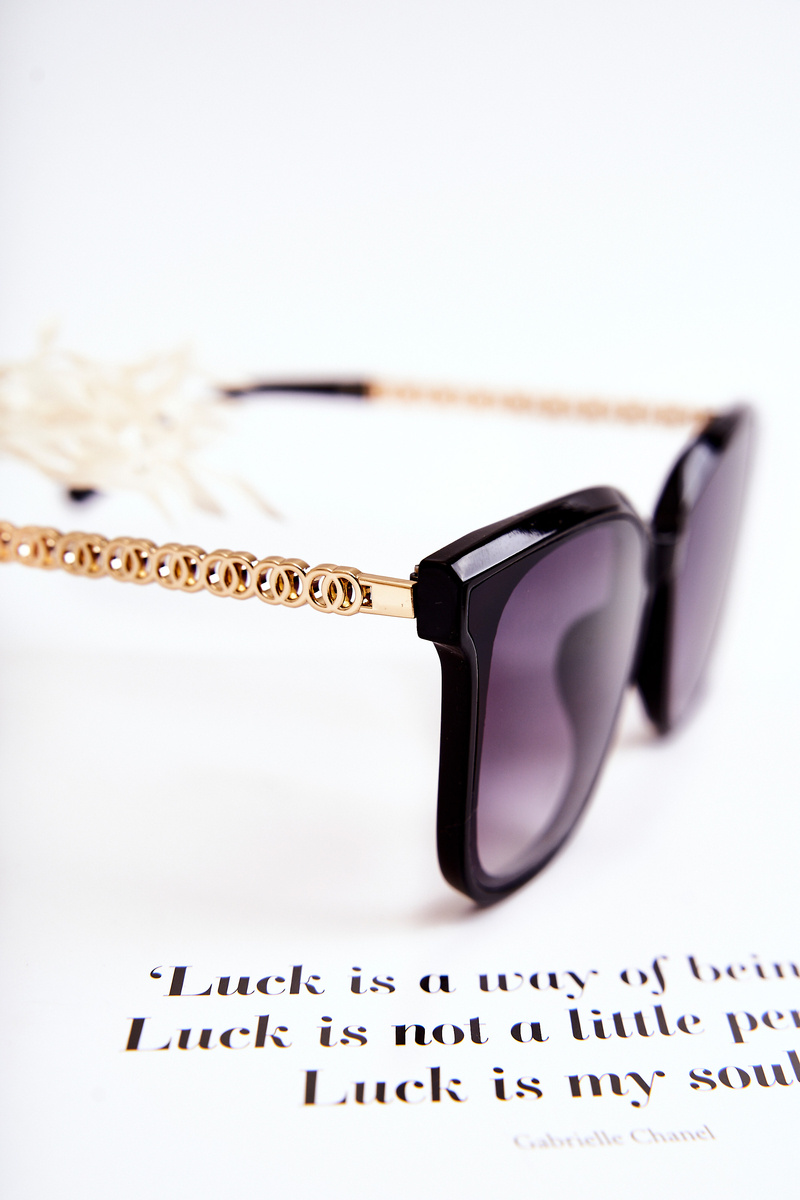 Okulary przeciwsłoneczne dla wielu osób są dodatkiem do stylizacji. Podstawowym ich zadaniem powinna być ochrona przed szkodliwym promieniowaniem UV, ponieważ promienie te mogą być bardzo niebezpieczne dla oczu. Wybierz model, który spełni swoje zadanie! Okulary przeciwsłoneczne zostały wykonane z tworzywa sztucznego. Klasyczny model w stylu wayfarer. Zauszniki posiadają ozdobne, złote dodatki.
