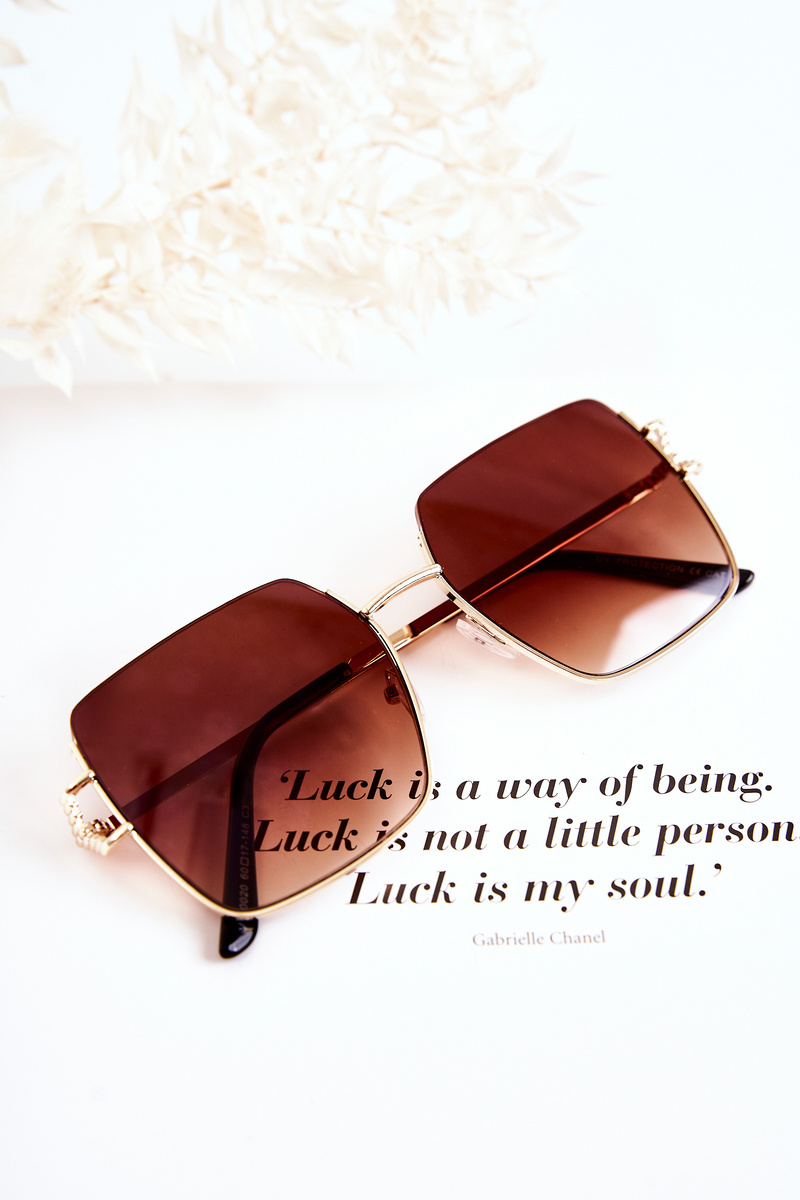 Okulary Przeciwsłoneczne Duże Brązowo-Złote V160020