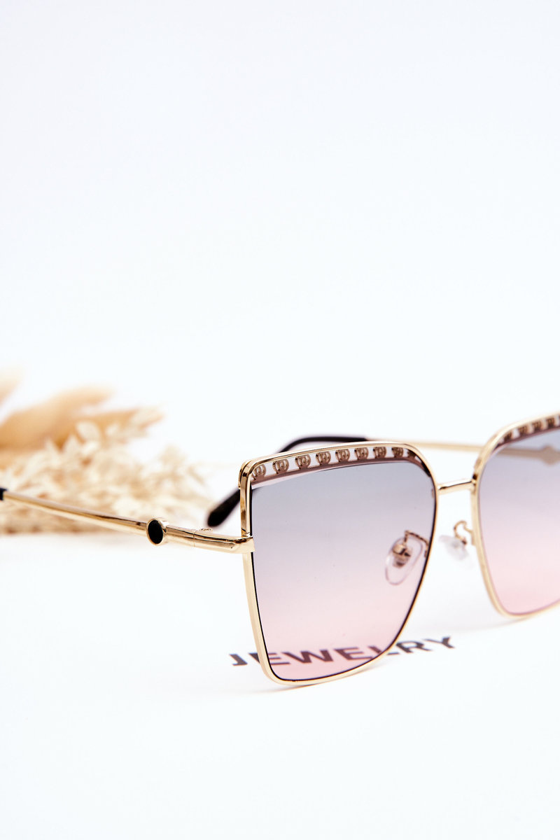 Okulary przeciwsłoneczne dla wielu osób są dodatkiem do stylizacji. Podstawowym ich zadaniem powinna być ochrona przed szkodliwym promieniowaniem UV, ponieważ promienie te mogą być bardzo niebezpieczne dla oczu. Wybierz model, który spełni swoje zadanie! Okulary przeciwsłoneczne wykonane są z połączenia tworzywa sztucznego oraz metalu. Noski silikonowe można odpowiednio dopasować do własnych wymagań. Soczewki posiadają zdobienia od góry po wewnętrznej stronie. Świetny model do wielu stylizacji.
