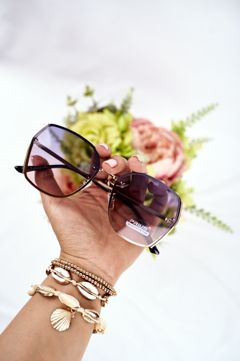 Opinie o Okulary Przeciwsłoneczne Prius PRE-38 Złote Czarne Gradient Brokat