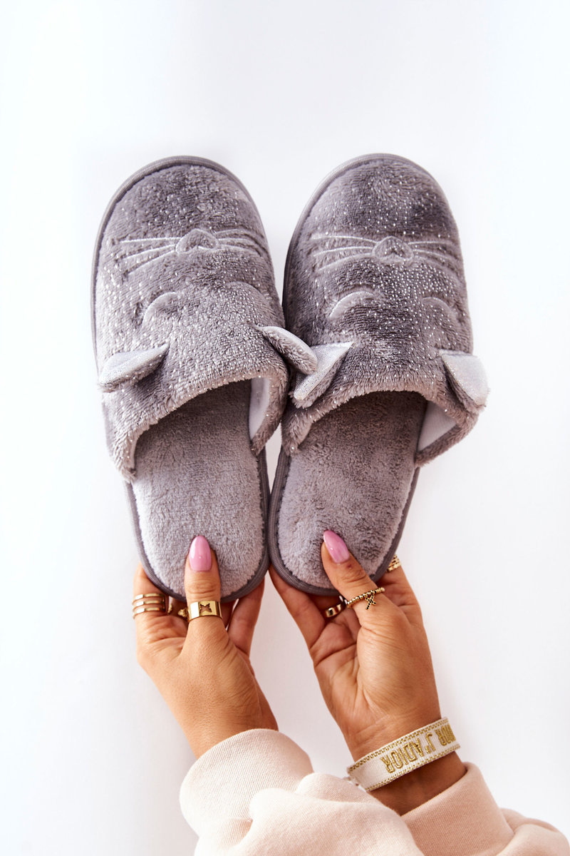 Papcie Błyszczące Kotki Z Uszami Szare Kaisy