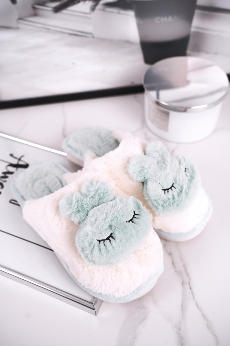 Papcie Damskie Futrzane Jasno Zielone Rabbit