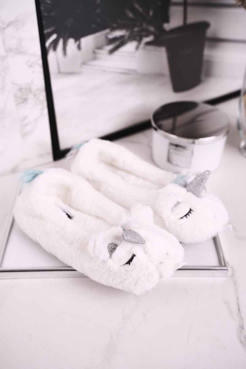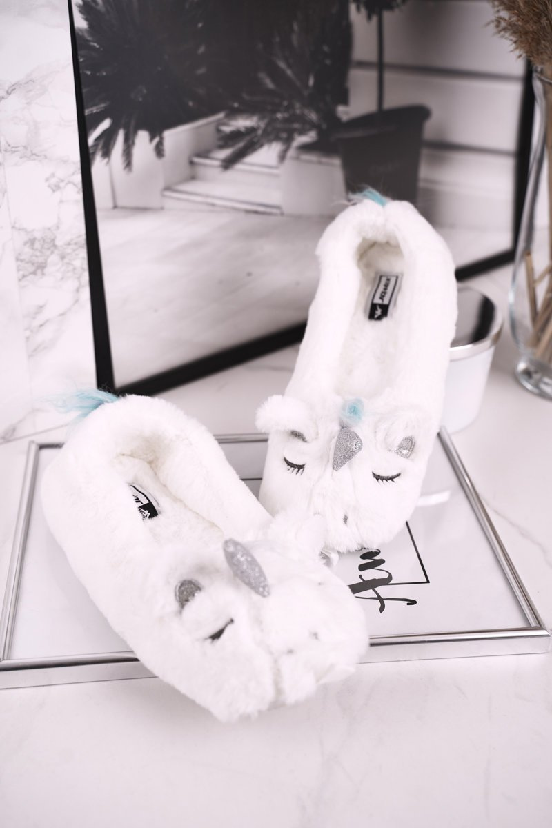 Papcie Damskie Futrzane Jednorożce Białe Rainbow