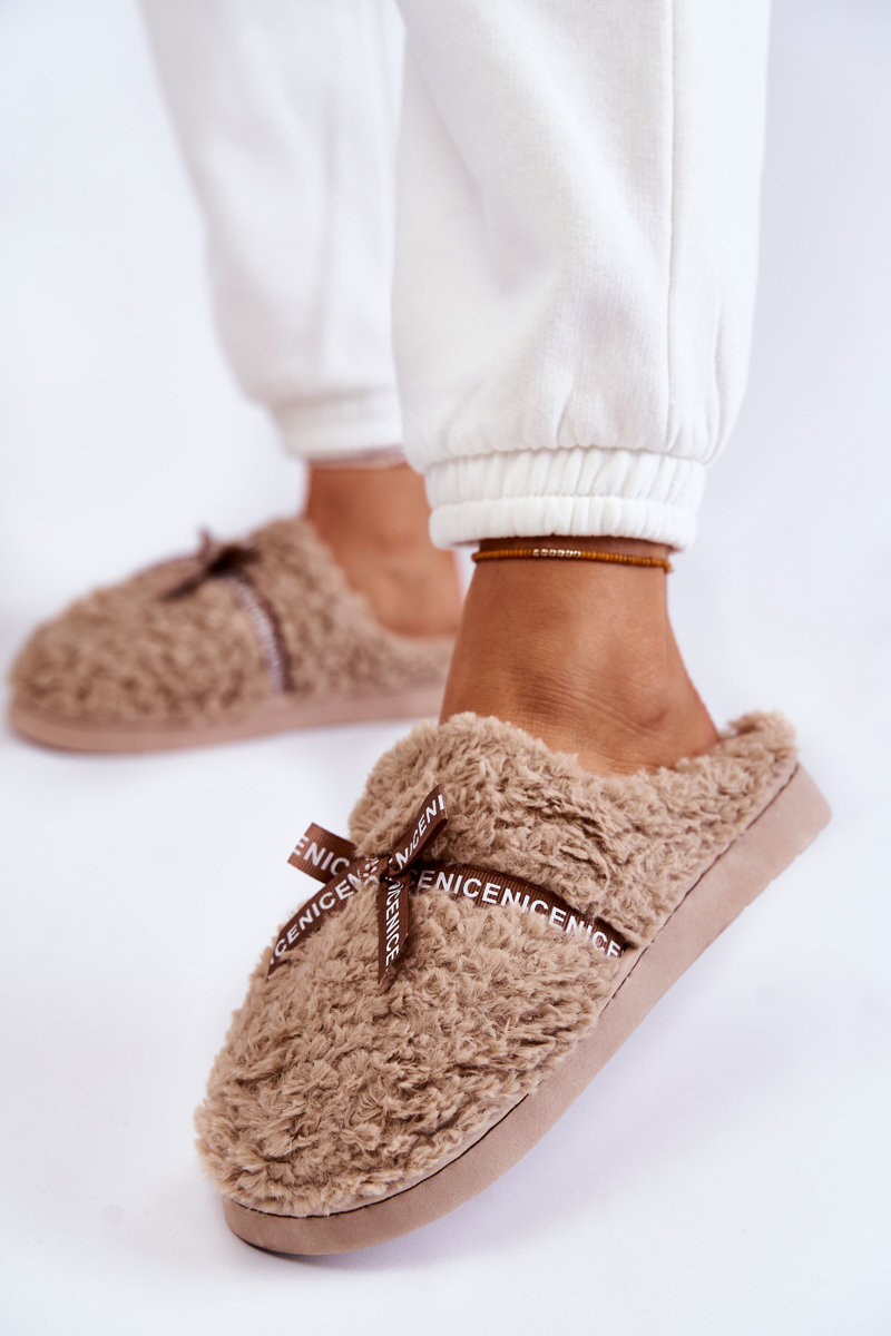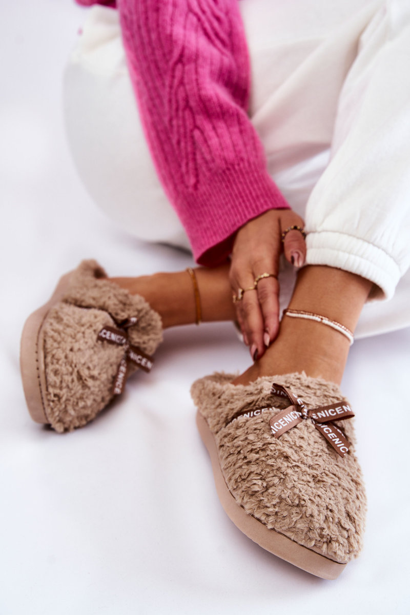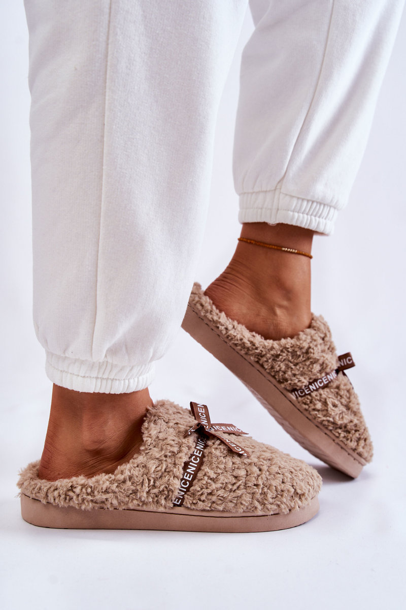 Papcie Damskie Futrzane Kokardka Beżowe Ryana