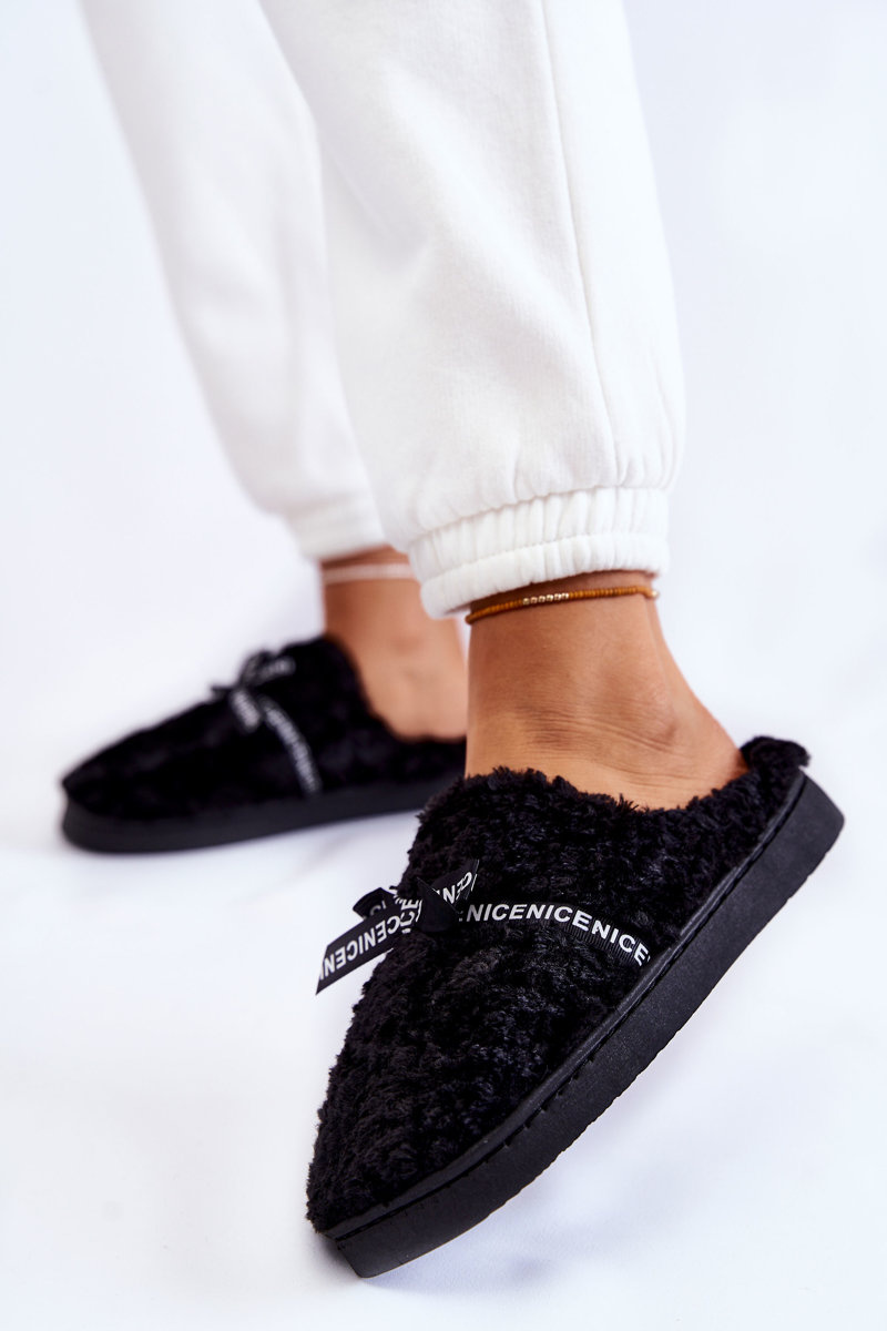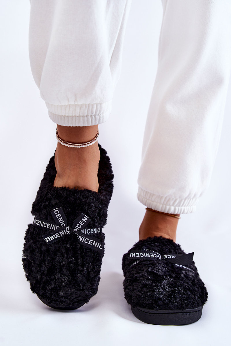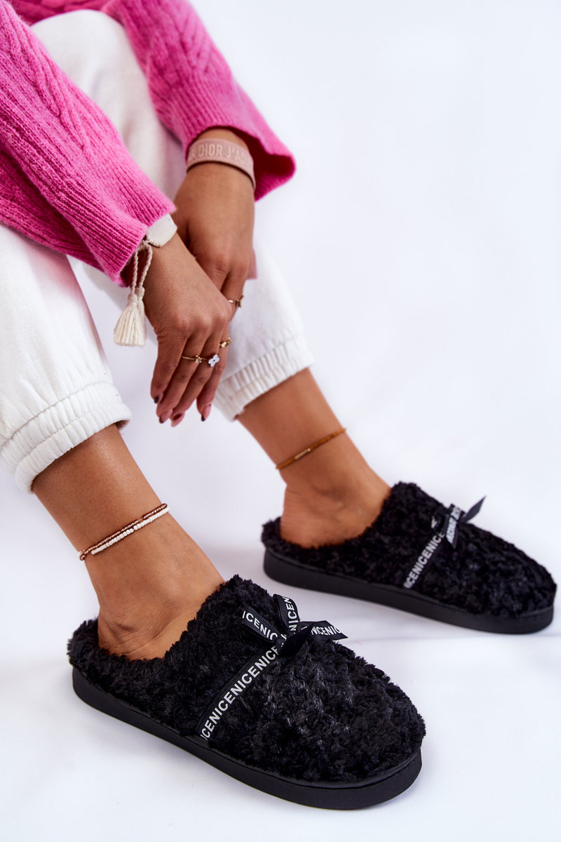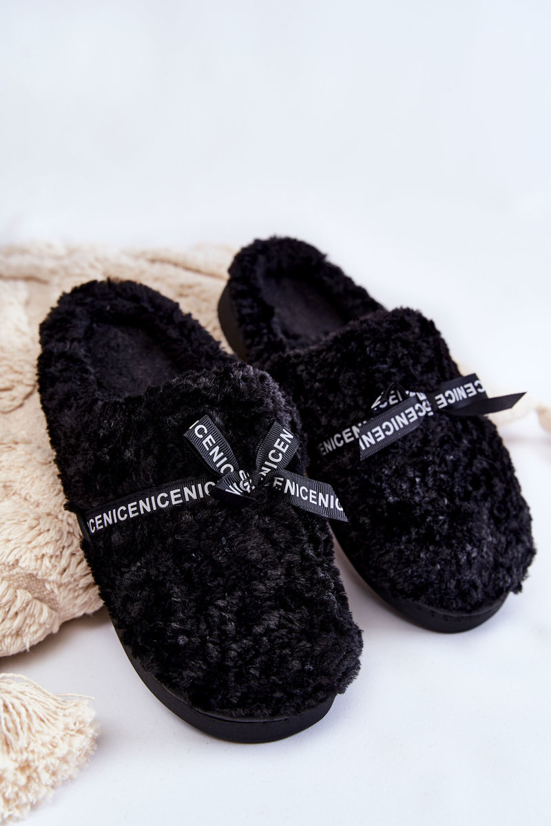 Papcie Damskie Futrzane Kokardka Czarne Ryana