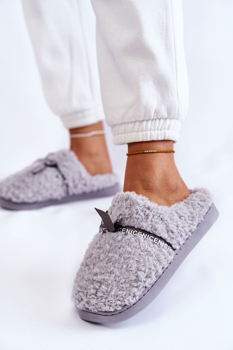 Papcie Damskie Futrzane Kokardka Szare Ryana