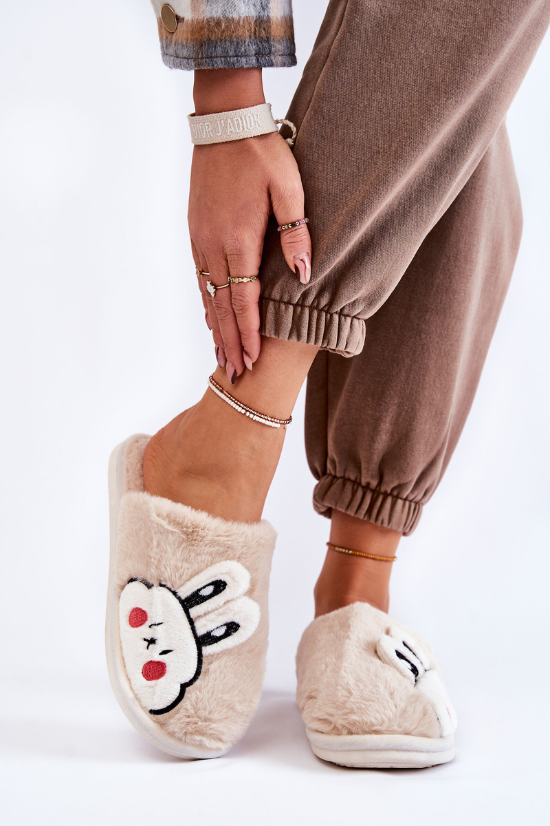 Papcie Damskie Futrzane Królik Beżowe Trisha