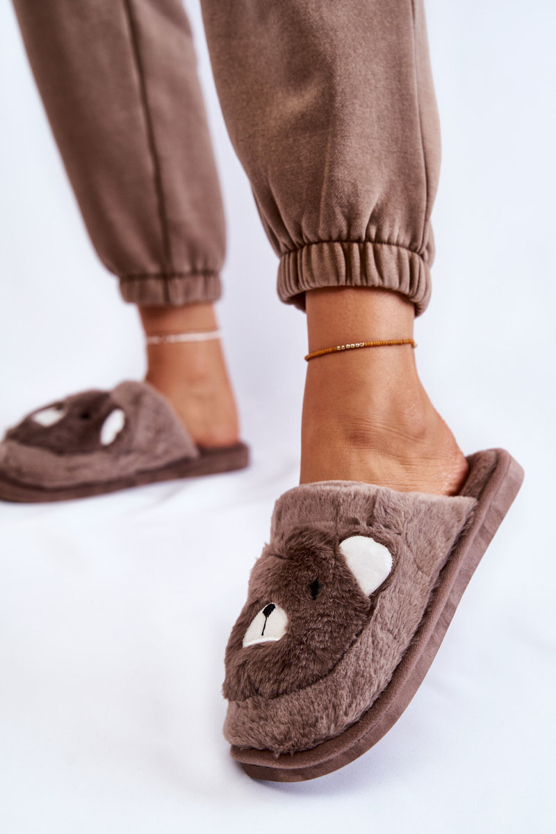 Papcie Damskie Futrzane Miś Brązowe Solly