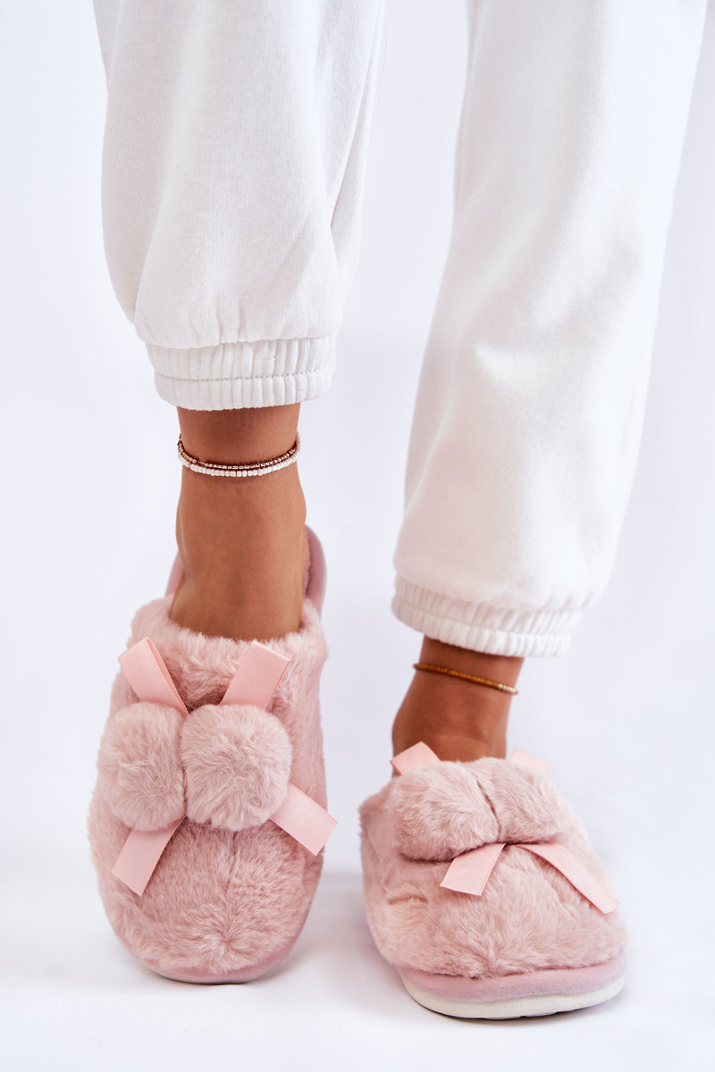 Papcie Damskie Futrzane Pompony Różowe Castello