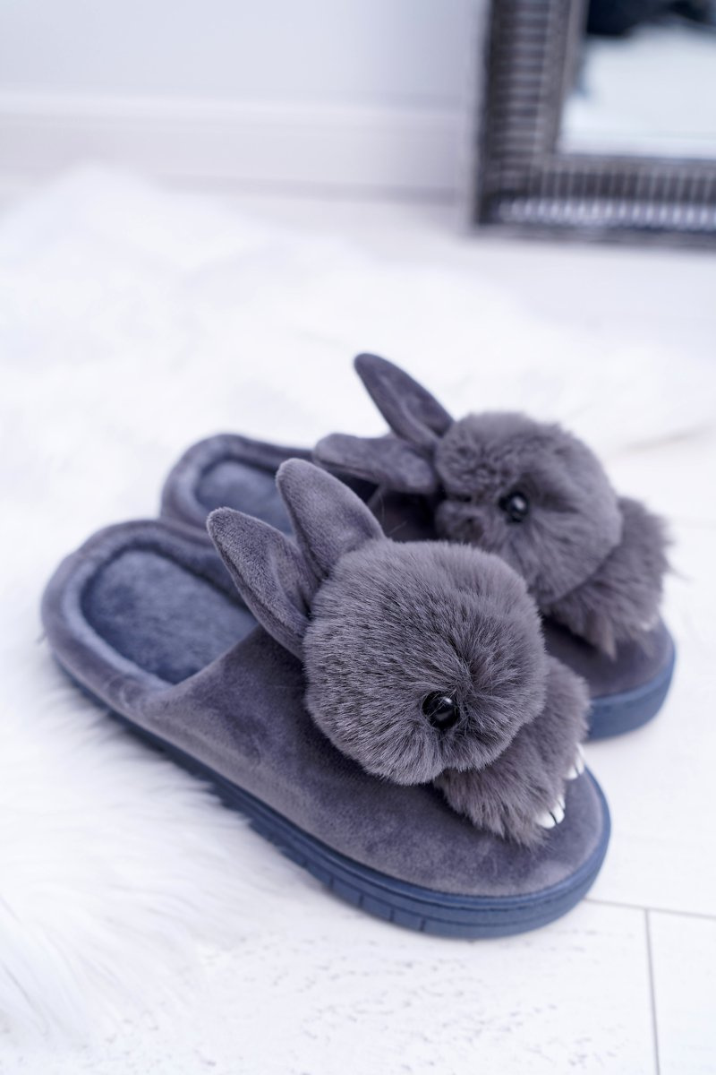 Papcie Damskie Klasyczne Z Królikiem Szare Howi