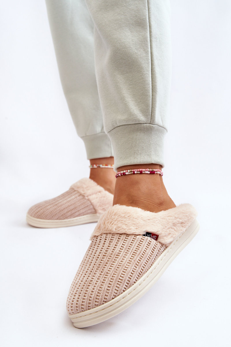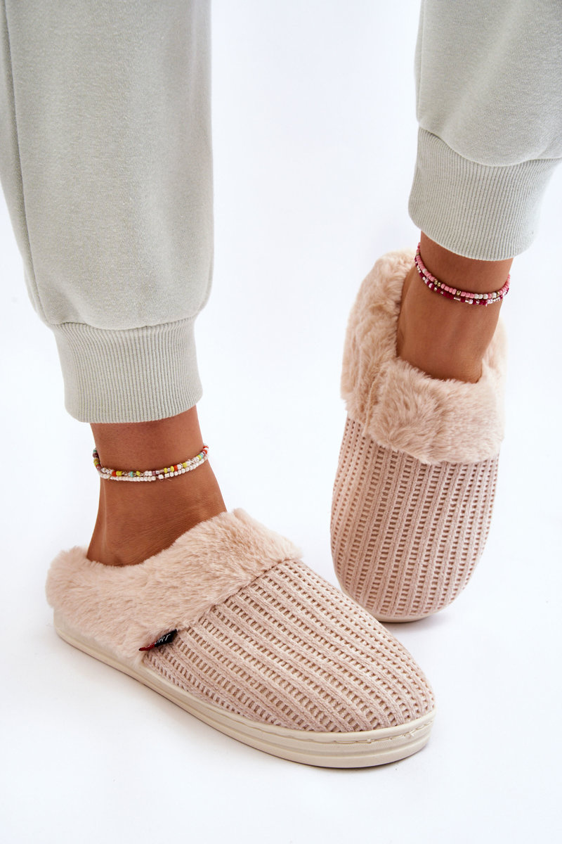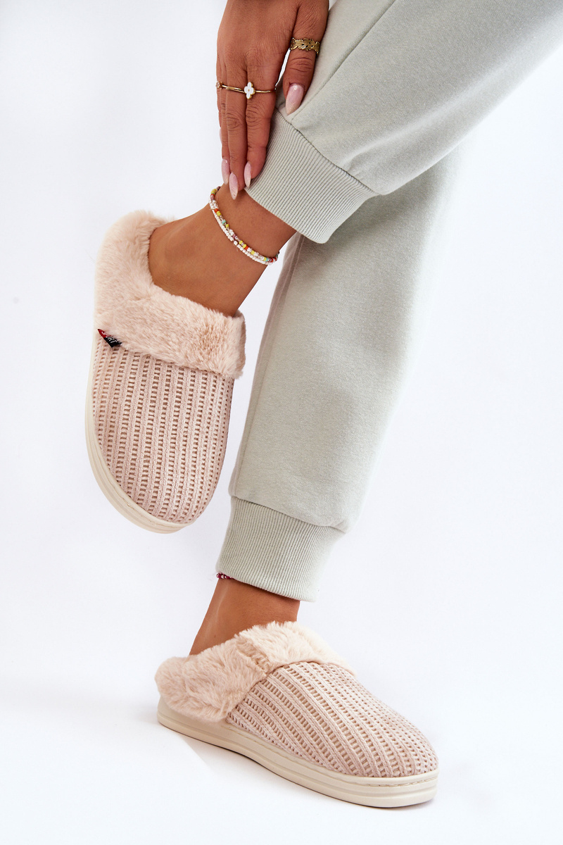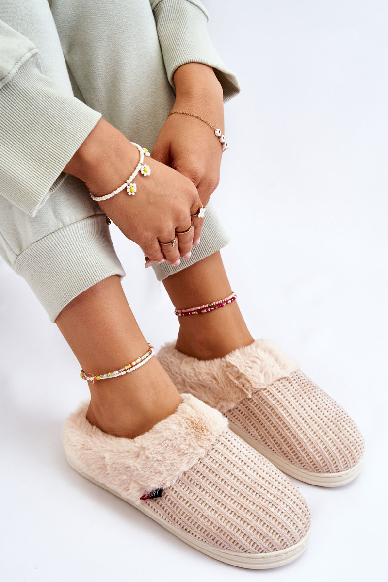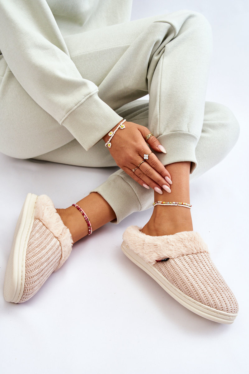 Papcie Damskie Ocieplane Wsuwane Futerko Beżowe Leriss