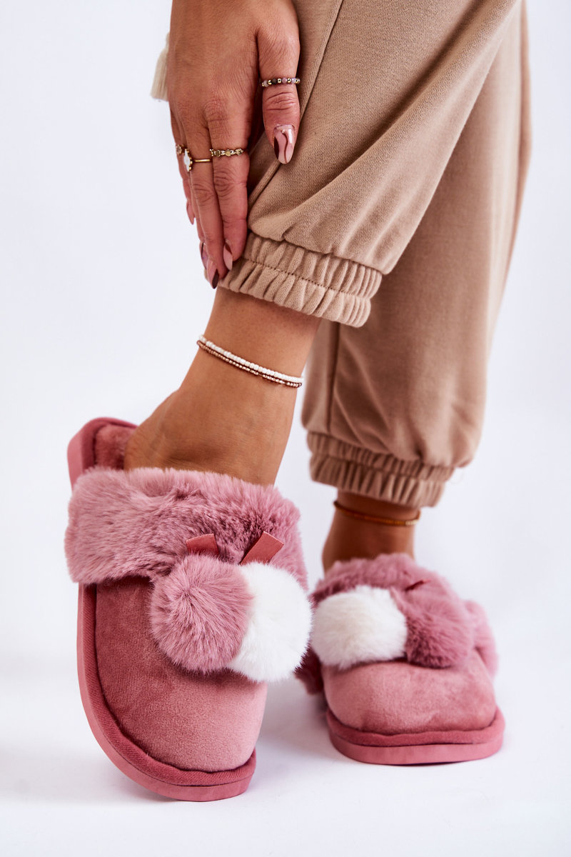 Papcie Damskie Pompony Futerko Różowe Sahira
