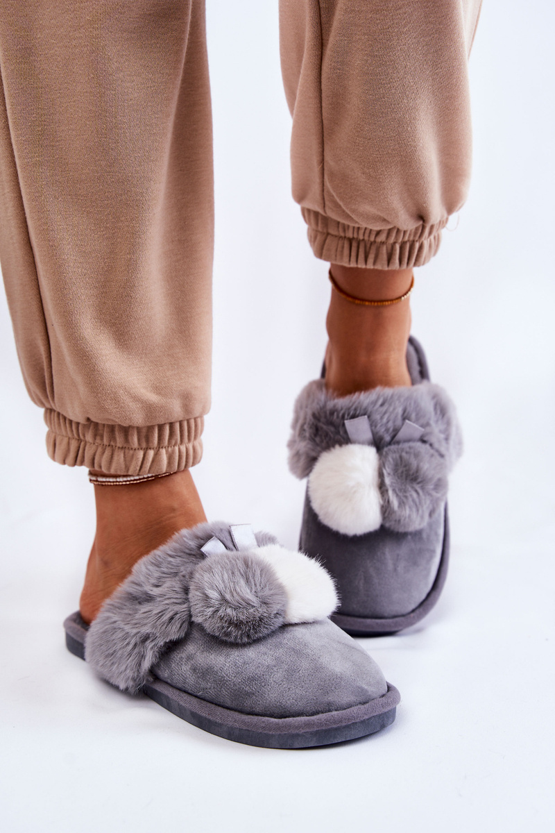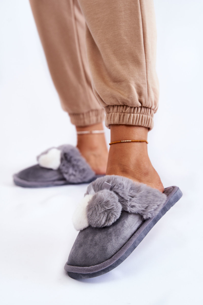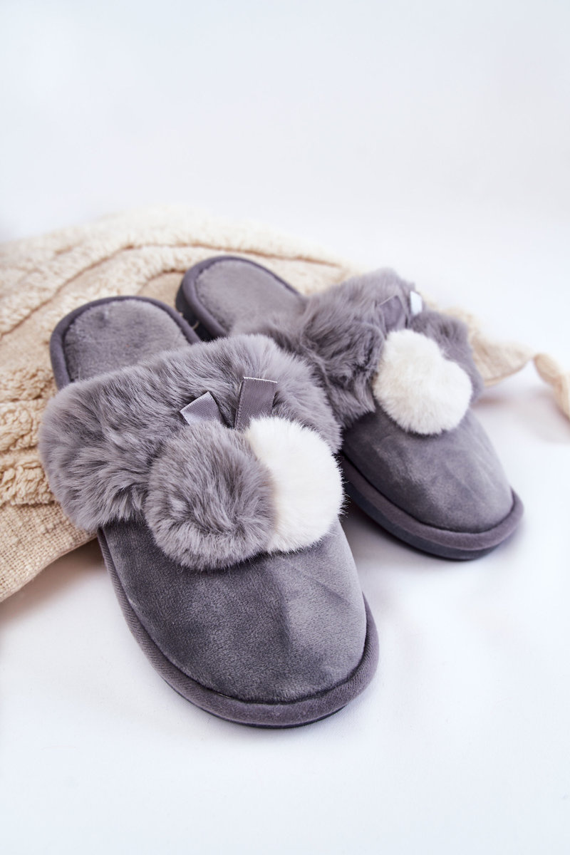 Klasyczne papcie idealnie sprawdzą się w domowym zaciszu. Sprawią, że będziesz czuła się w nich niezwykle wygodnie i komfortowo. Podeszwa ochroni przed zimnym podłożem. Spraw sobie nową parę papci i ciesz się ciepłem przez długi czas! Wykonane z wierzchu z miłego w dotyku materiału z ozdobnymi pomponami i futerkiem. Wewnątrz papcie zostały ocieplone kocem obuwniczym. Wkładka jest wygodna i komfortowa podczas użytkowania. Przy wyborze rozmiaru prosimy kierować tabelą rozmiarów.