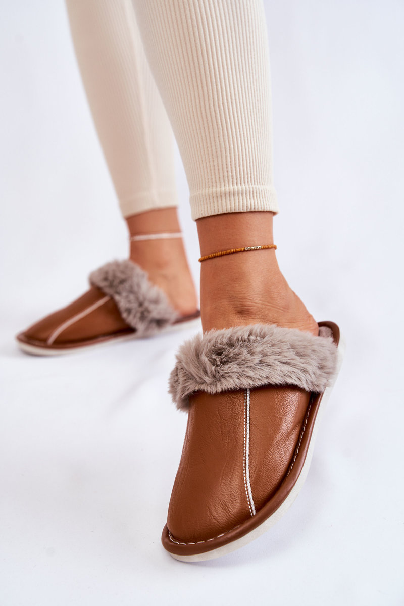 Papcie Damskie Skóra Futerko Brązowe Rossa