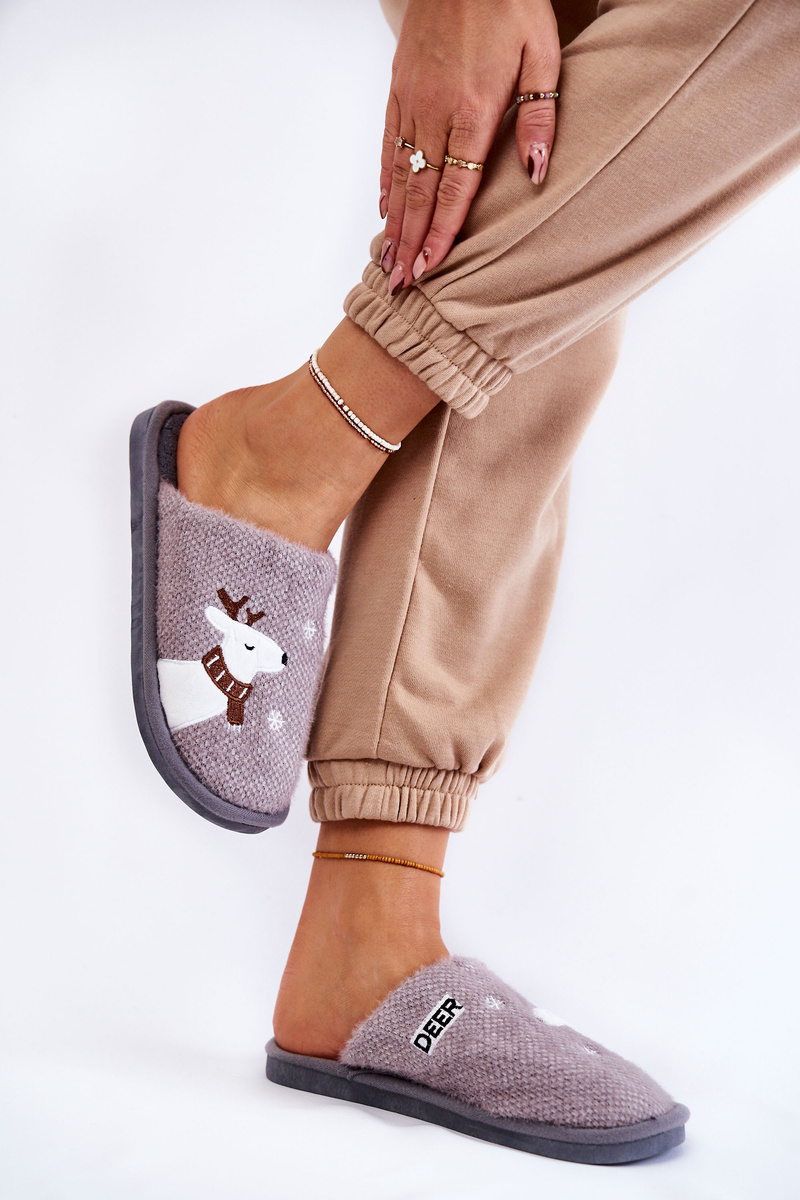 Papcie Damskie Świąteczne Z Reniferem Szare Millio
