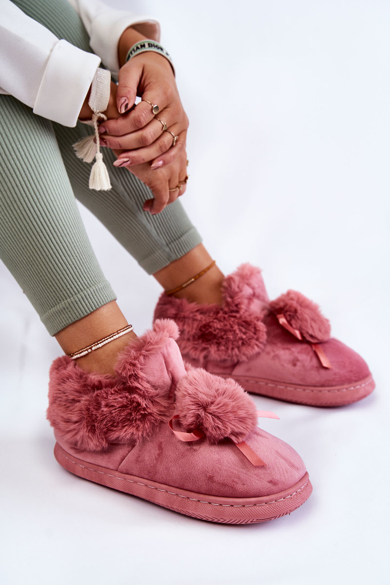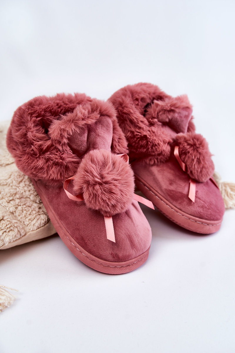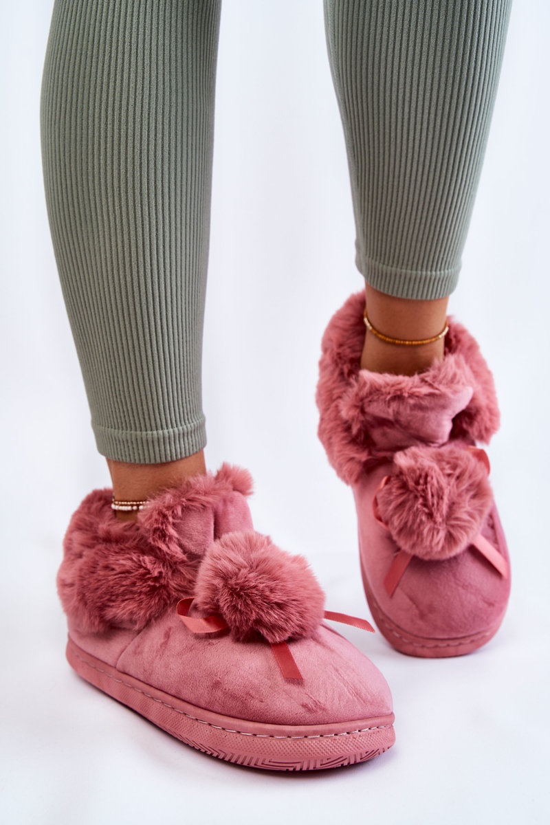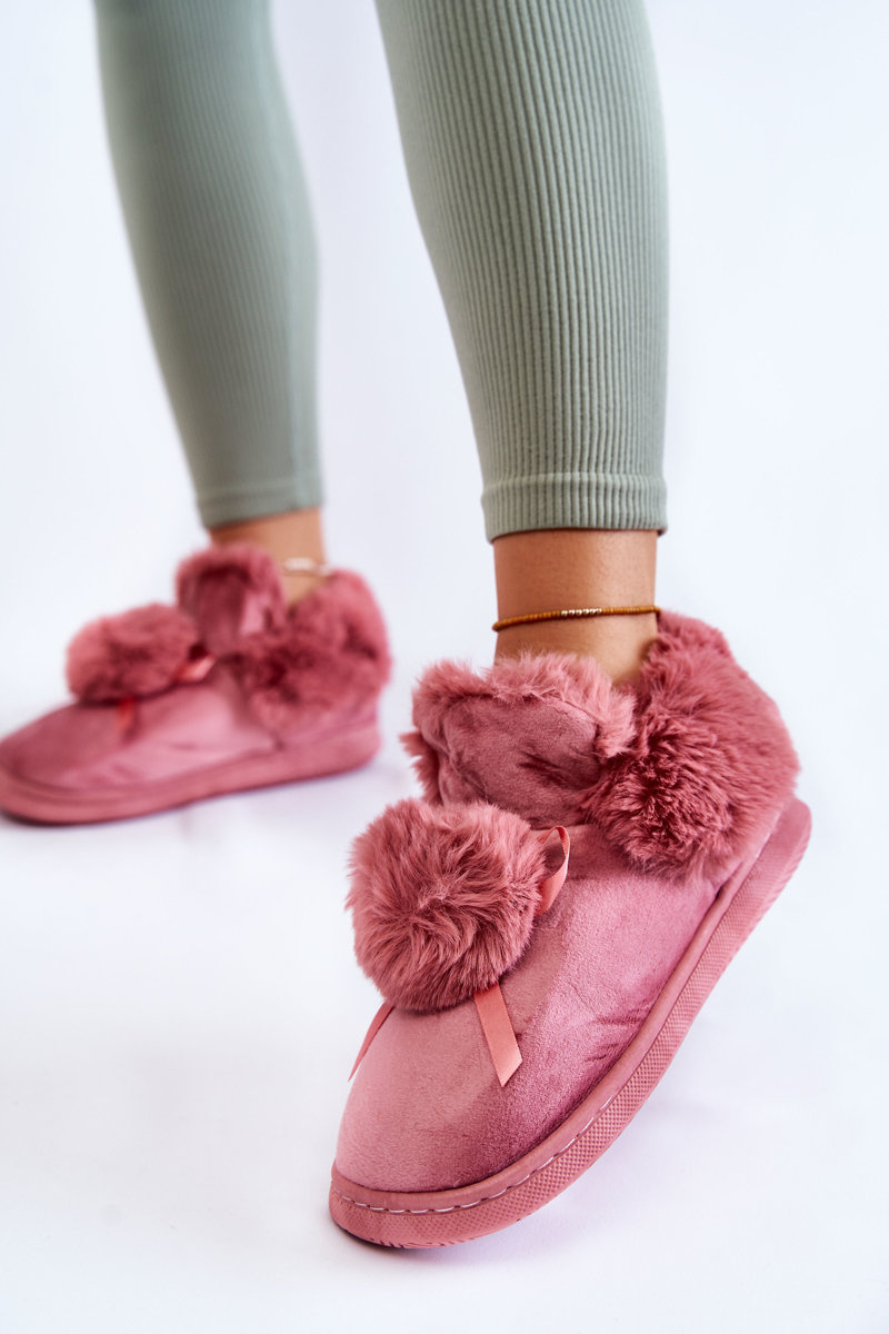 Papcie Damskie Wsuwane Futrzane Pompon Różowe Noemi