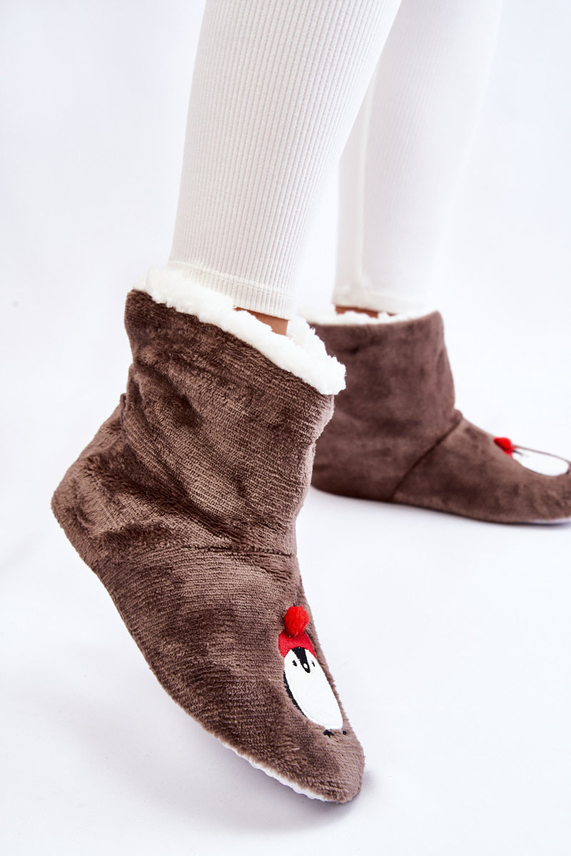 Papcie Damskie Wsuwane Ocieplane Pingwiny Ciemnoszare