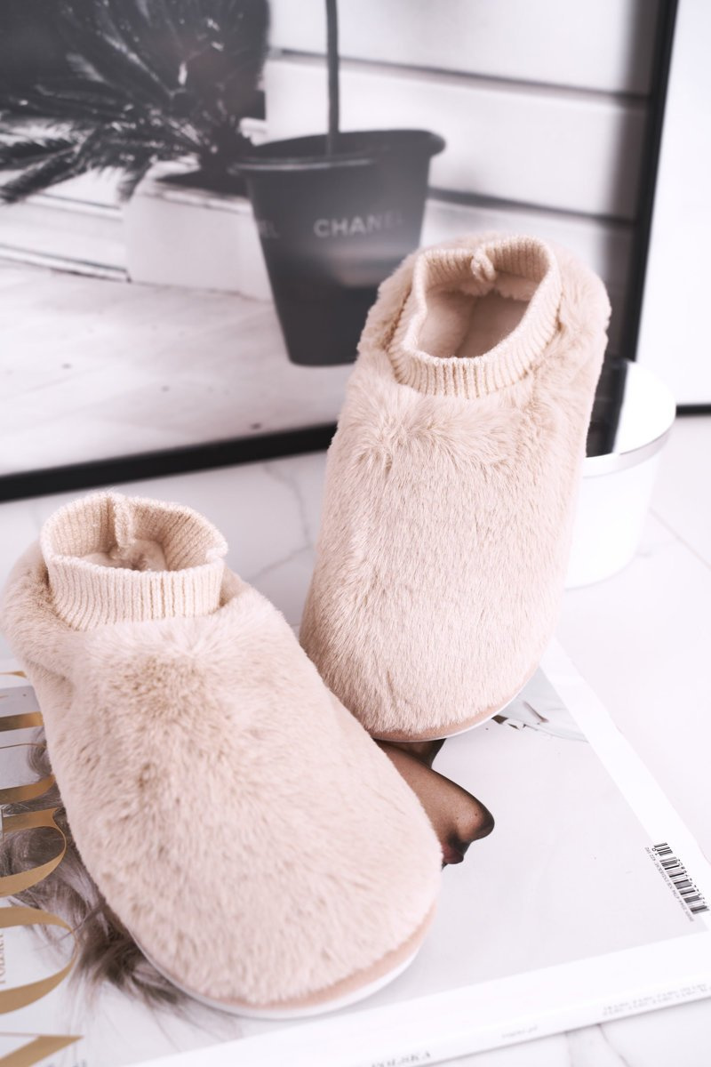 Papcie Damskie Z Futerkiem I Skarpetką Beżowe Yeti