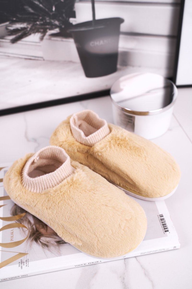 Papcie Damskie Z Futerkiem I Skarpetką Żółte Yeti