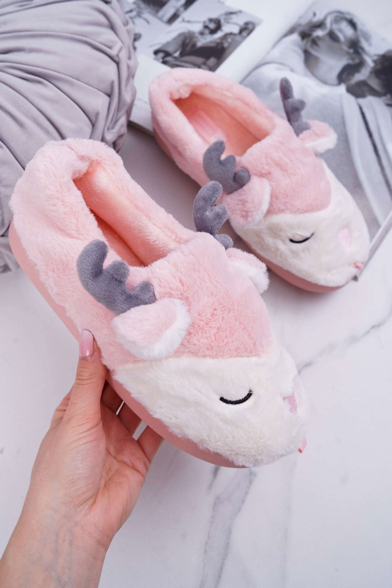 Papcie Damskie Z Futerkiem Renifery Róż Reindeer