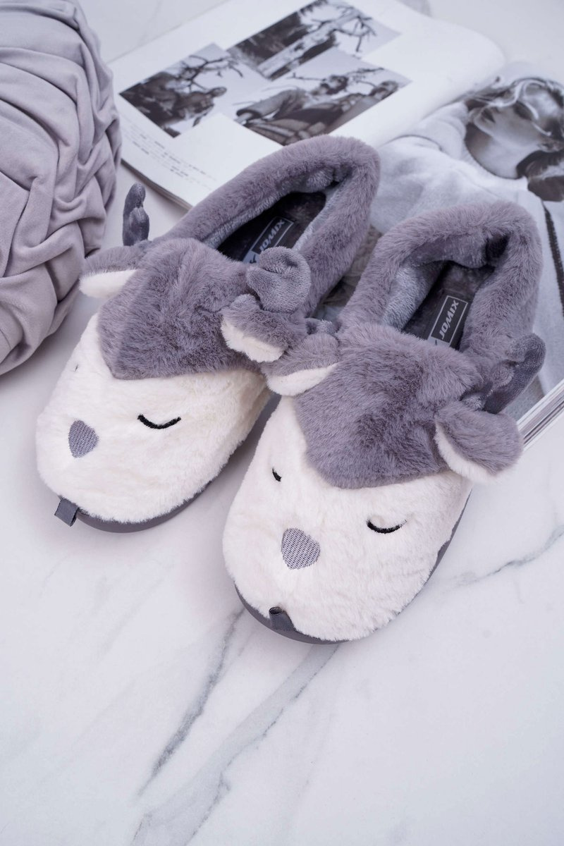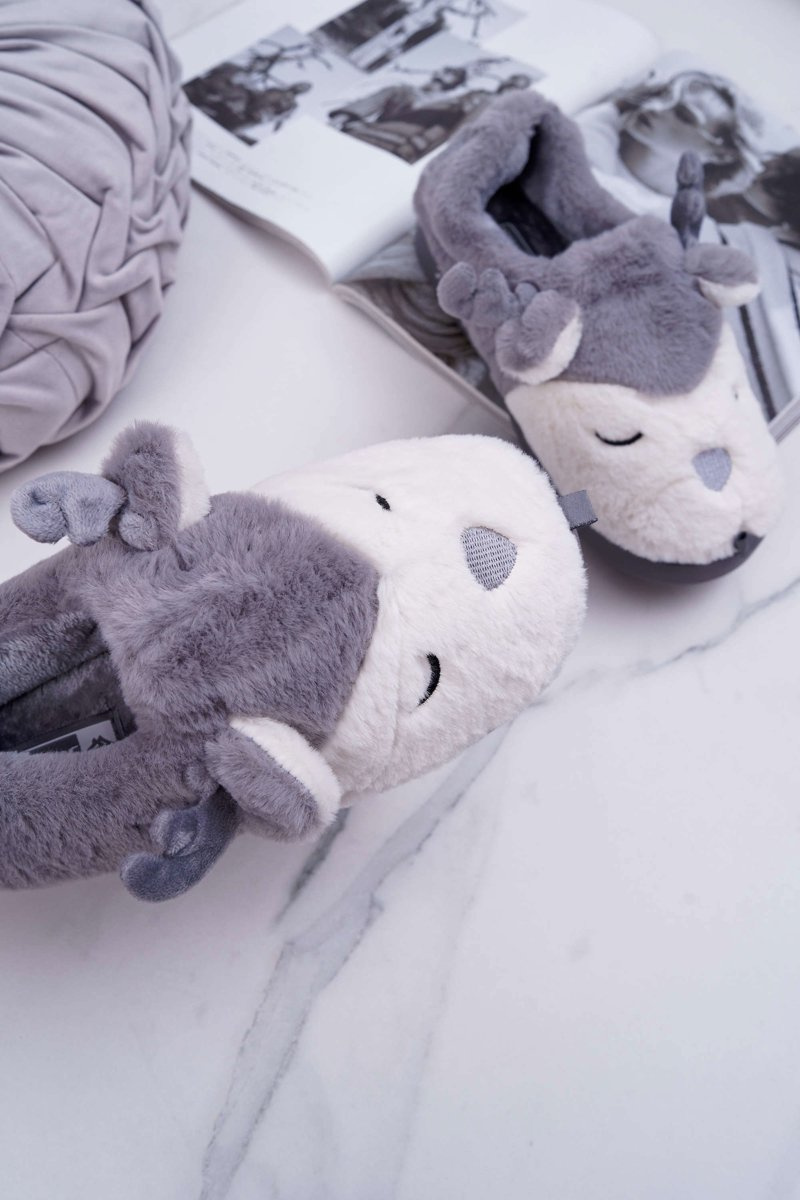 Papcie Damskie Z Futerkiem Renifery Szare Reindeer