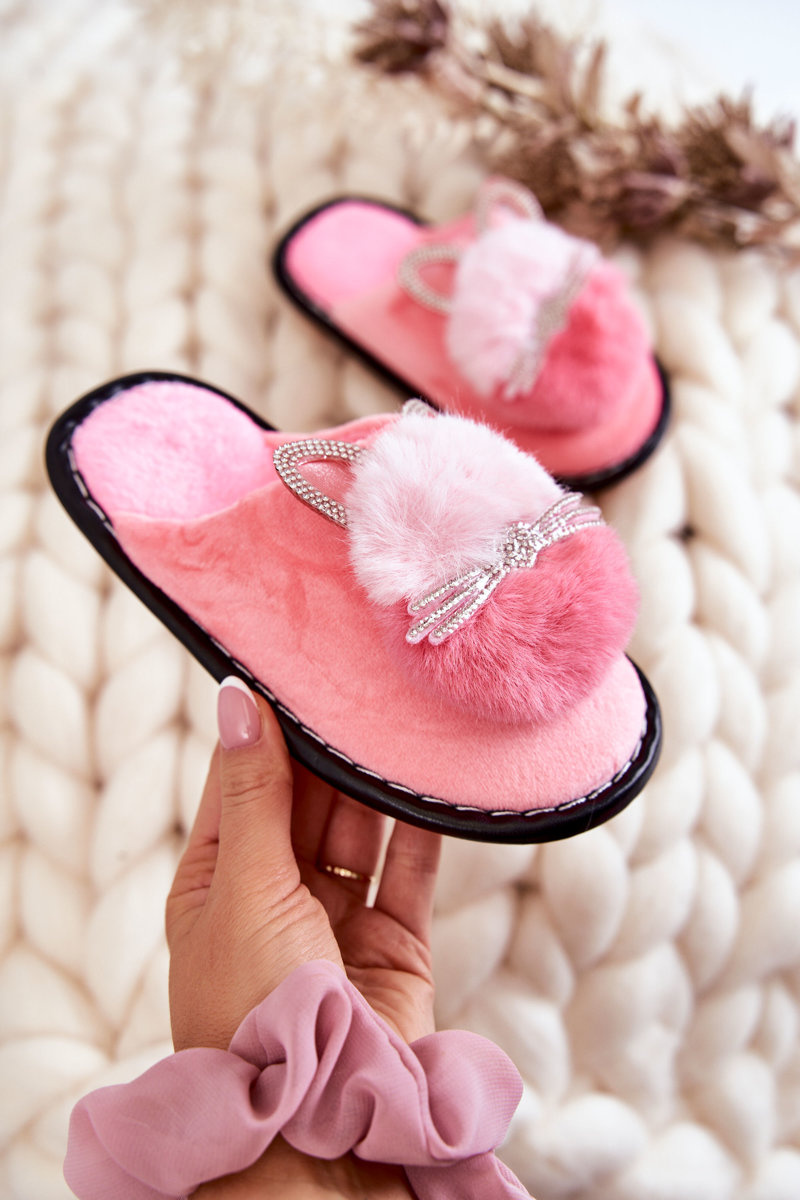 Papcie dziecięce osadzone na płaskie podeszwie. Nosek zakryty. Idealnie sprawdzą się w domowym zaciszu. Wygodne i odpowiednie dla każdego malucha! Wykonane z miękkiego materiału tekstylnego. Model wsuwany. Ozdobione eko futerkiem oraz dżetami w postaci cyrkonii. Motyw kotka jest niezwykle uroczy. Miękka wkładka została wykonana z tkaniny i jest niezwykle wygodna w użytkowaniu. Na pewno Twoja pociecha będzie zadowolona z tych papci!