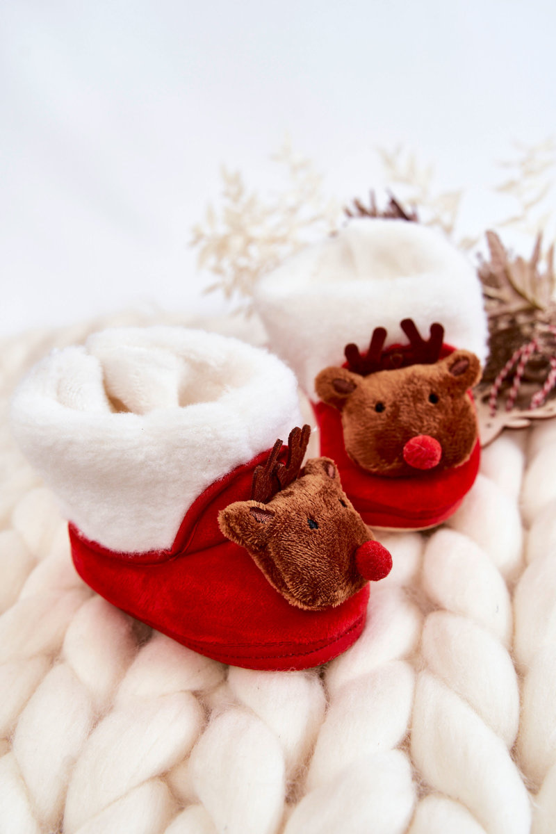 Papcie dziecięce osadzone na płaskiej podeszwie. Nosek jest zakryty. Idealnie sprawdzą się w domu. Wygodne i odpowiednie dla każdego malucha! Wykonane z akrylu i poliestru. Model ten posiada z tyłu sznurowanie, które umożliwi odpowiednie dopasowanie papci. Urocze postacie na przodzie papci idealnie będą pasować do świątecznego klimatu. Papcie wewnątrz zostały ocieplone miękkim futerkiem. Podeszwa jest antypoślizgowa.