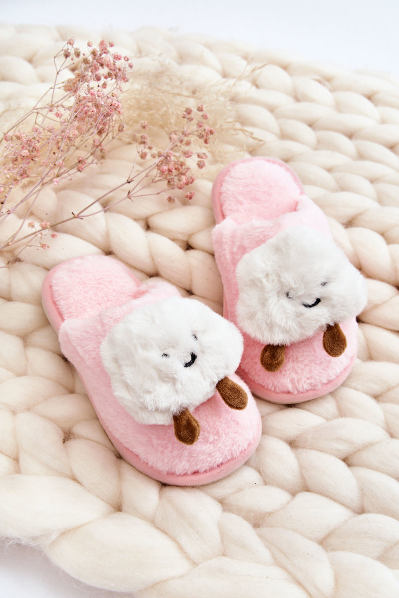 Papcie dziecięce osadzone na płaskie podeszwie. Nosek zakryty. Idealnie sprawdzą się w domowym zaciszu. Wygodne i odpowiednie dla każdego malucha! Wykonane z miękkiego, futerkowego materiału. Model klasyczny, wsuwany. Posiadają na przodzie przyklejonego stworka. Papcie zostały ocieplone wewnątrz futerkiem. Osadzone na platformie. Te papcie to bardzo komfortowy model.