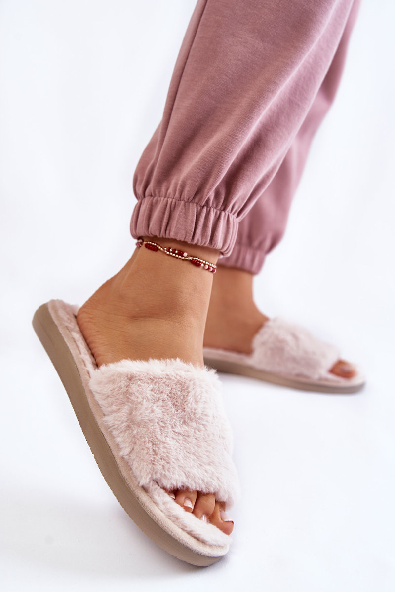 Papcie Klapki Domowe Futerko Beżowe Inblu EK-05-011