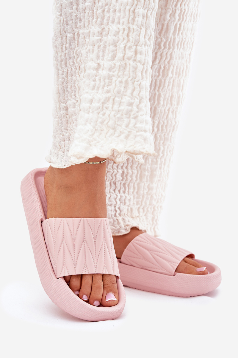 Piankowe Damskie Klapki Platforma Różowe Vanesha