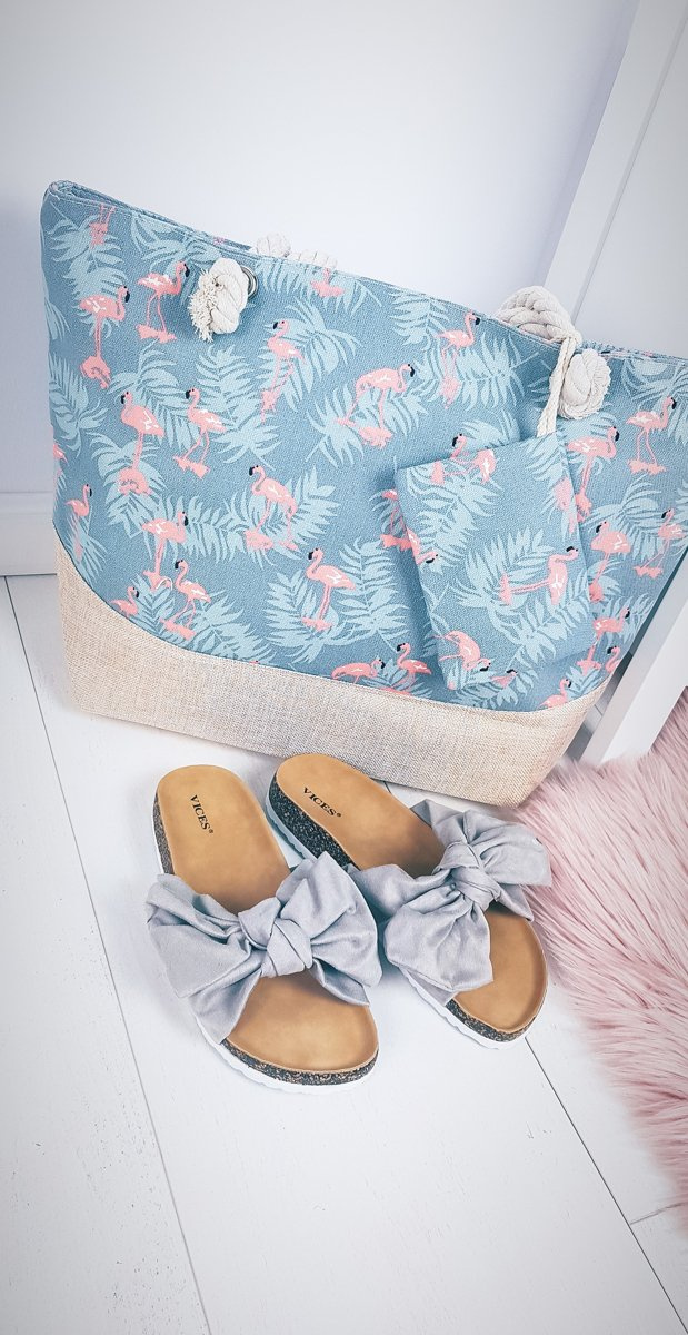 Plażowa Duża Niebieska Torebka Torba Damska Flamingi