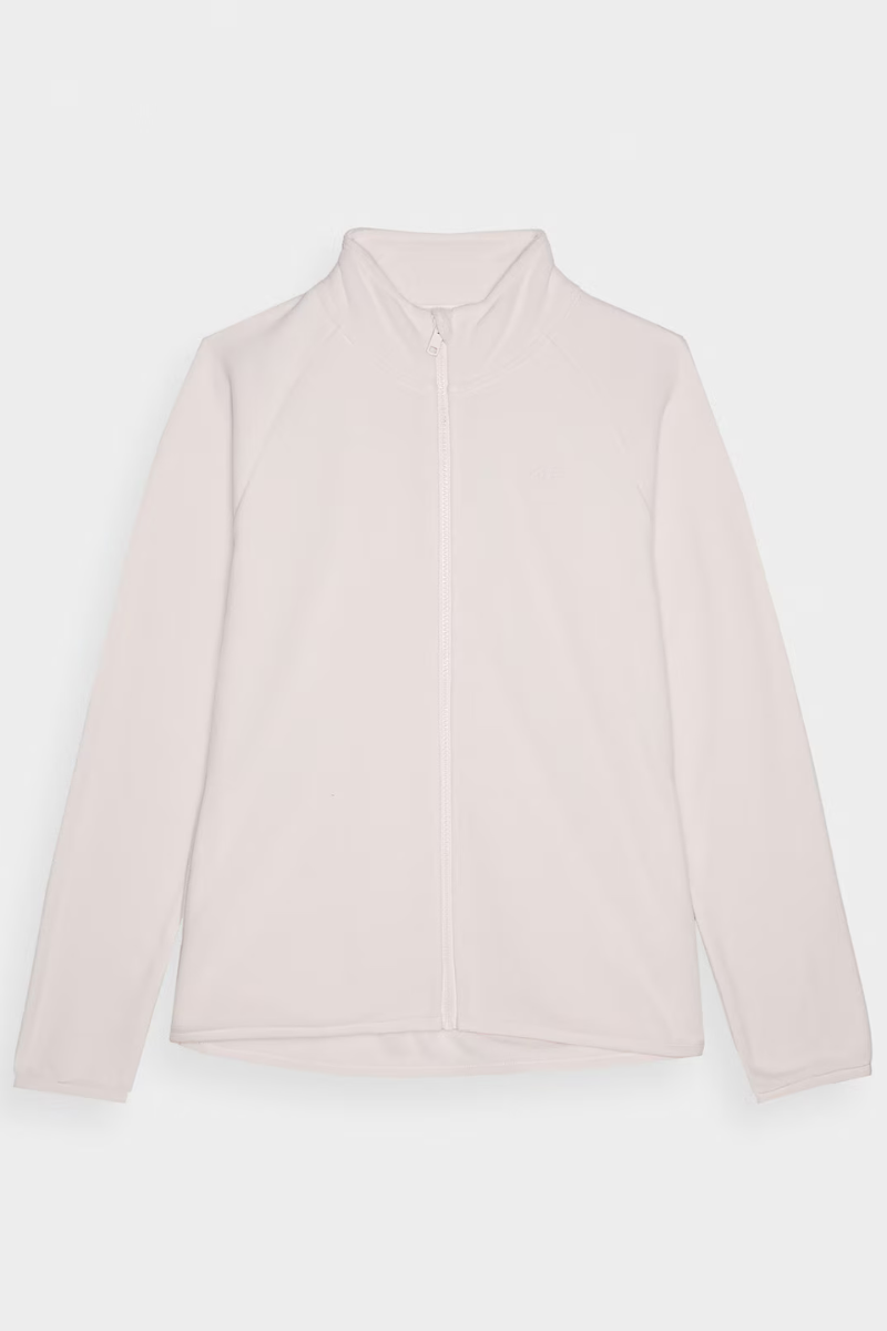 Bluza z polaru dla kobiety jest wykonana z cienkiego mikropolaru, który cechuje się dobrą izolacją termiczną przy wyjątkowo lekkiej wadze. Materiał ten oddycha i szybko schnie. Technologia 4F Warm wspiera komfort cieplny. Posiada krój regular, który wygodnie dopasowuje się do sylwetki oraz standardową długość sięgającą do linii bioder. Bluza z polaru dla kobiety posiada stójkę, która osłania szyję. Klasycznie wykończone mankiety. Po bokach znajdują się 2 kieszenie otwarte. Zapinany na jednokierunkowy zamek główny. Raglanowe rękawy nie ograniczają ruchów. Materiał dodatkowy: Bawełna 60%, Poliester 40% Materiał główny: Poliester 100%