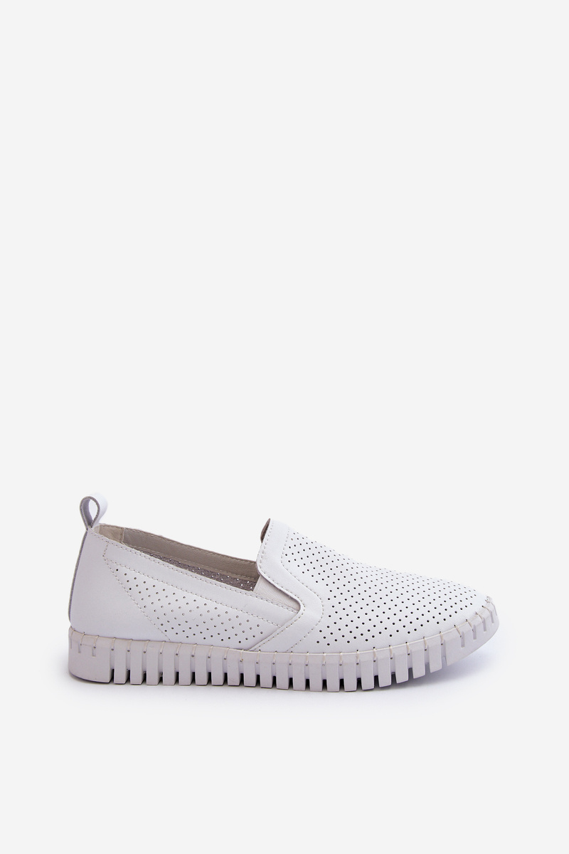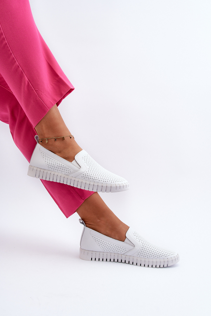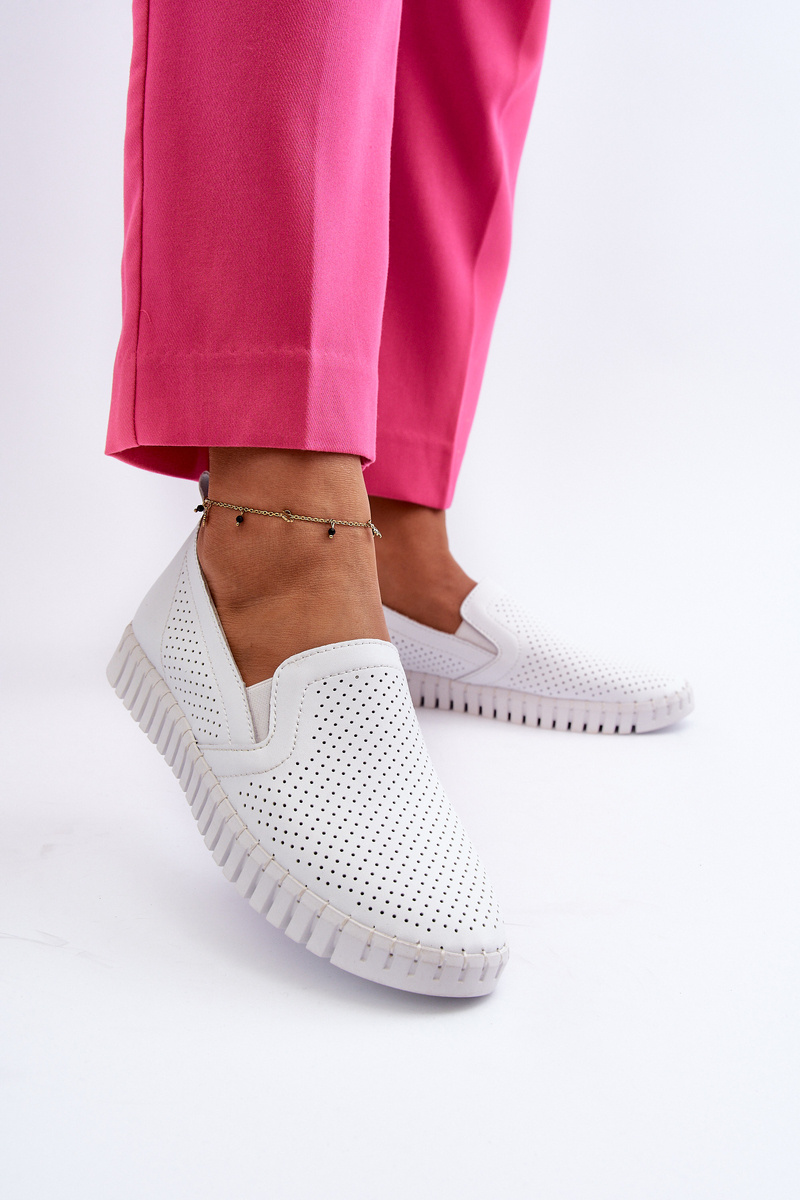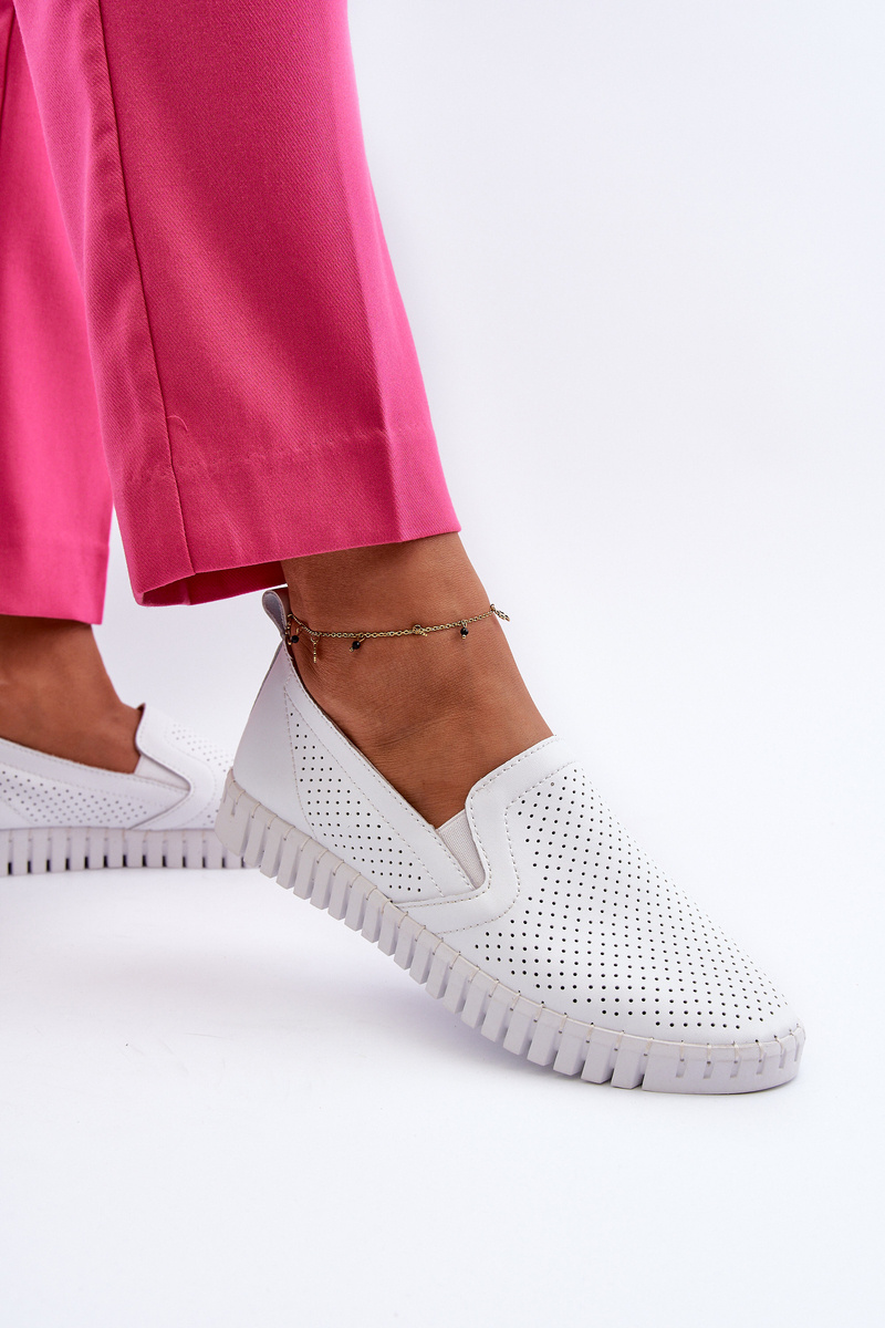 Półbuty Ażurowe Damskie Skóra Białe Theophia 7874
