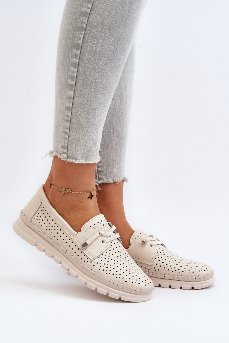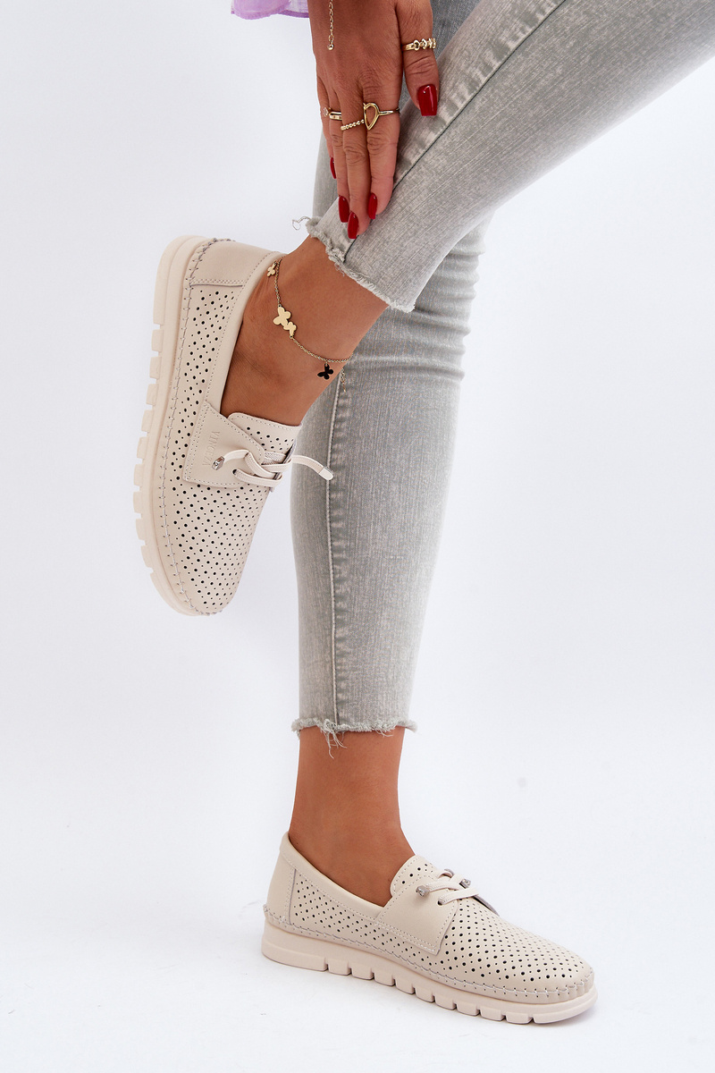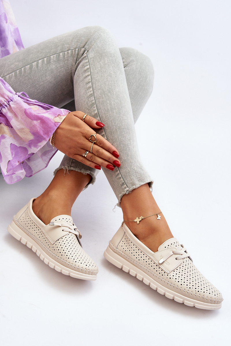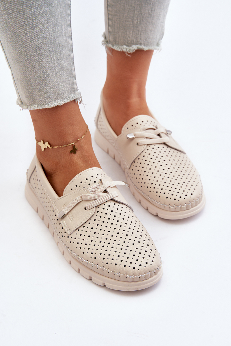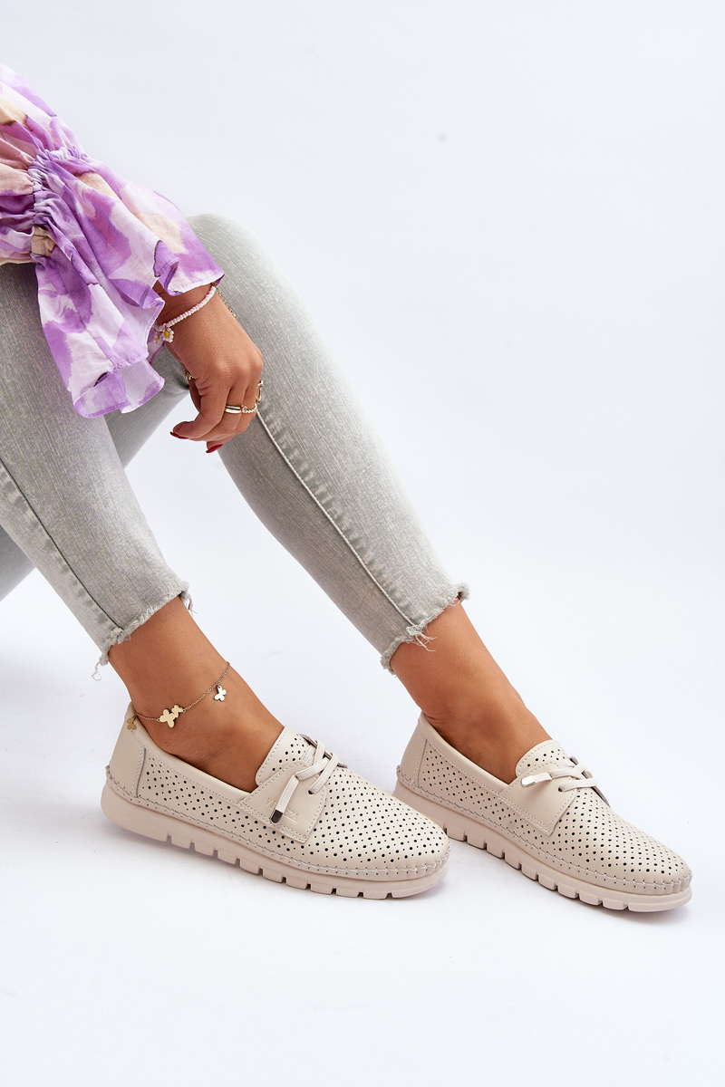 Półbuty Ażurowe Skóra Damskie Beżowe Darnissa 7872
