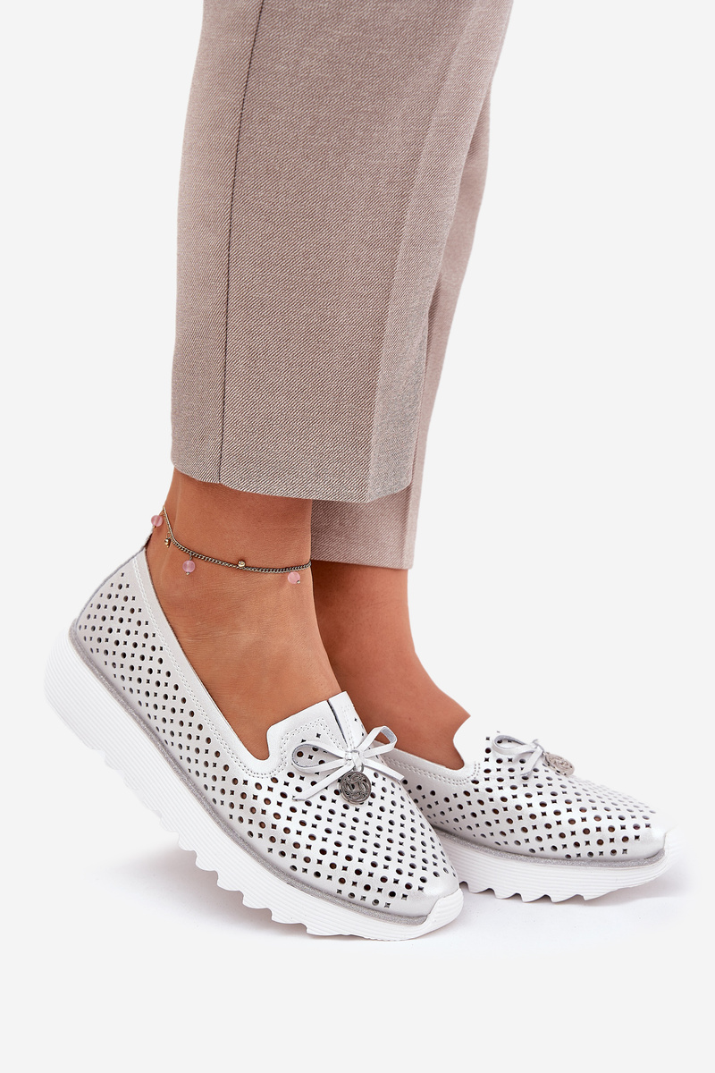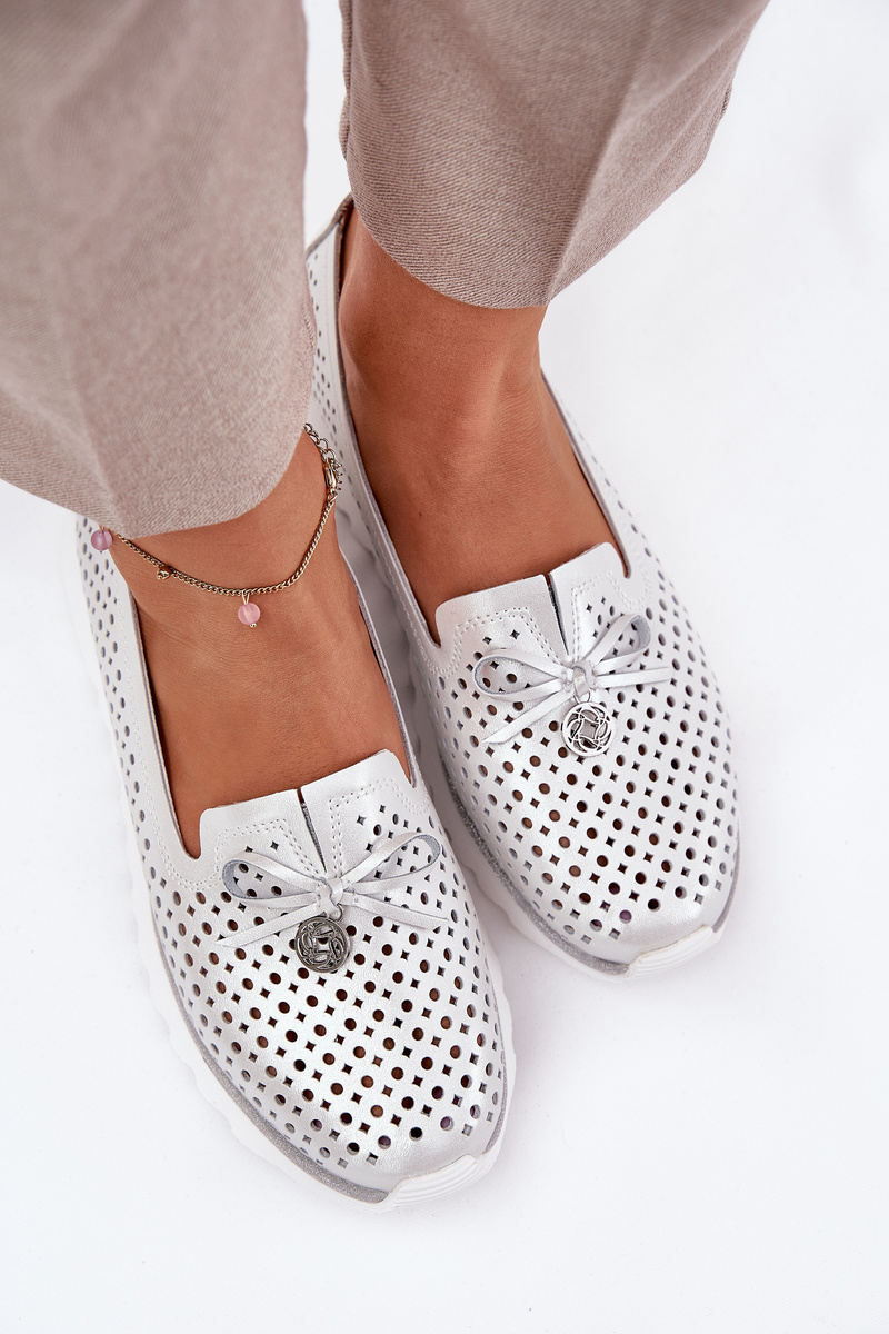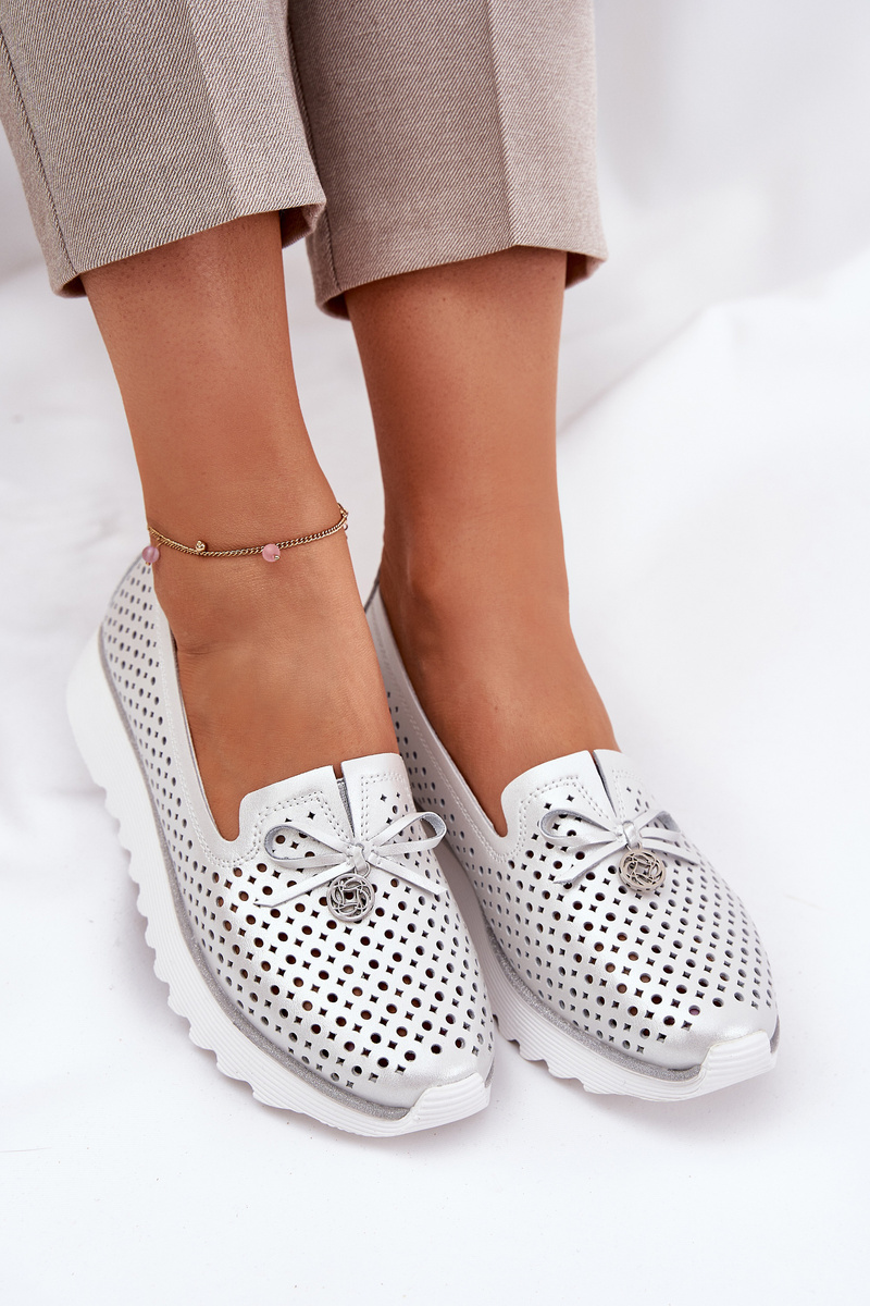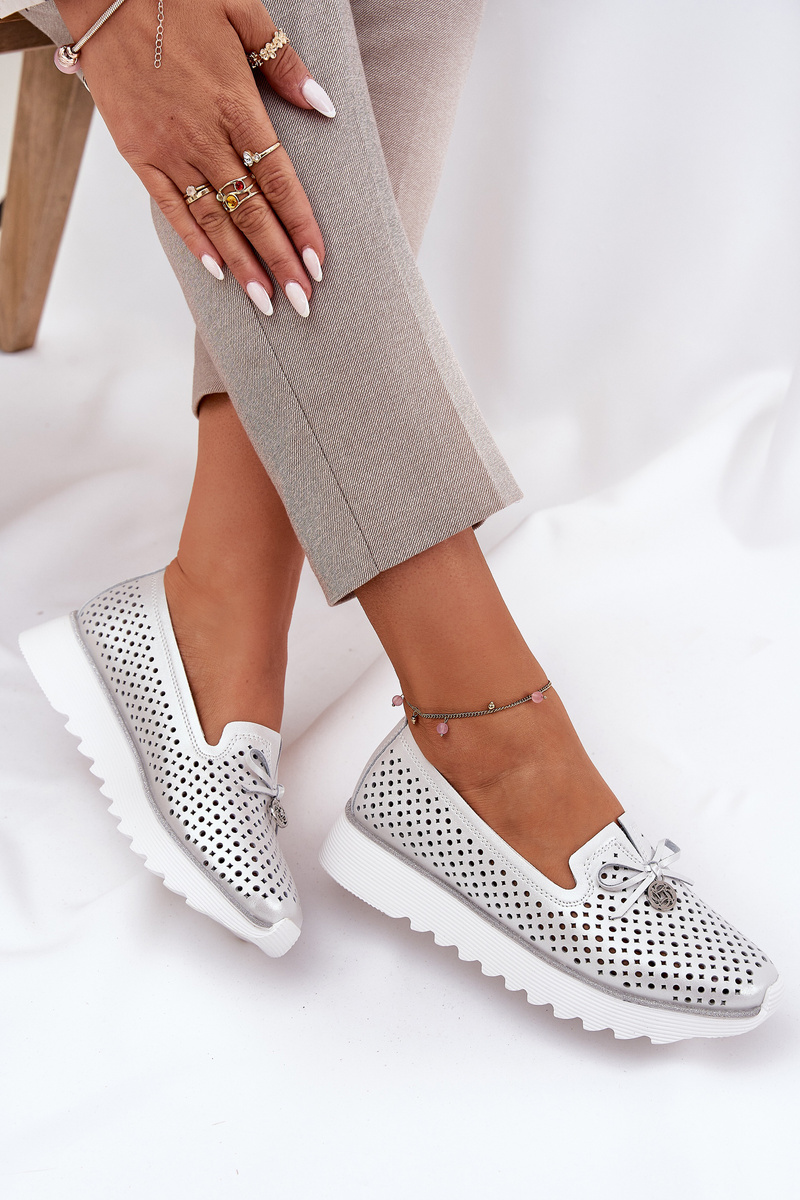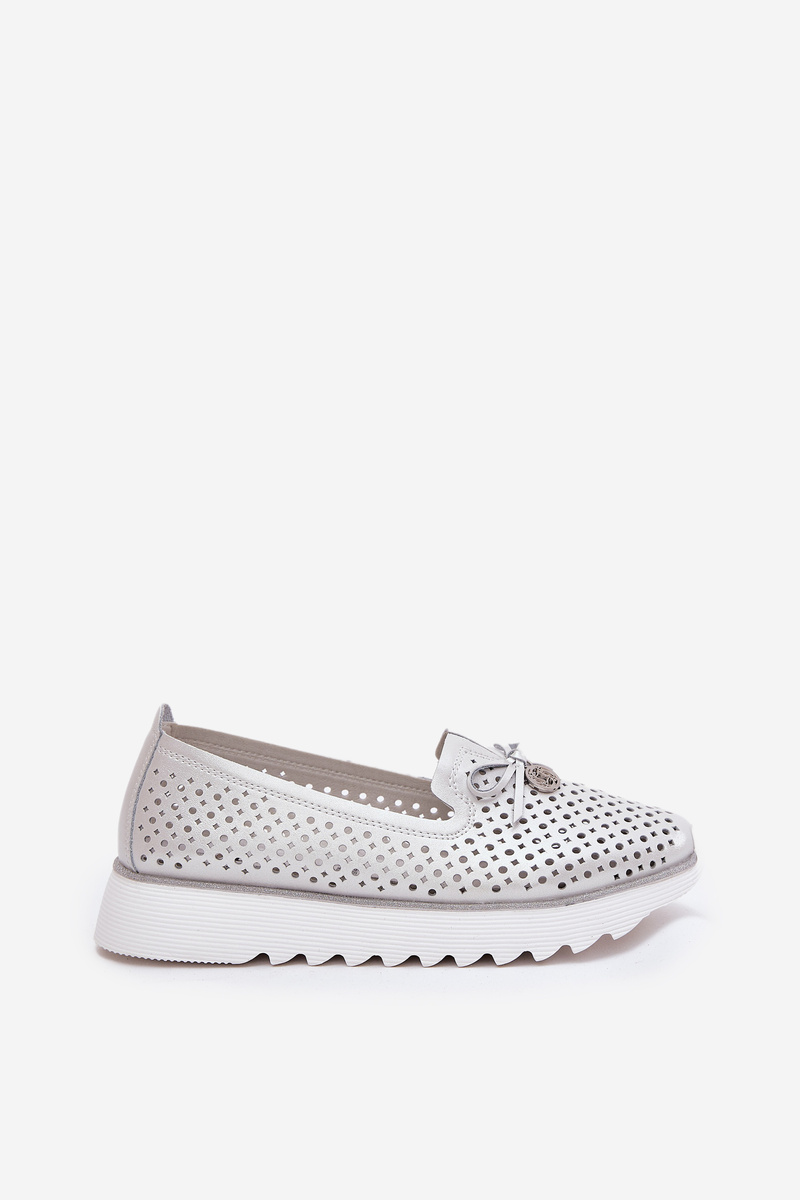 Półbuty Damskie Ażurowe Na Platformie Skóra Naturalna Srebrne D&A LR51-631