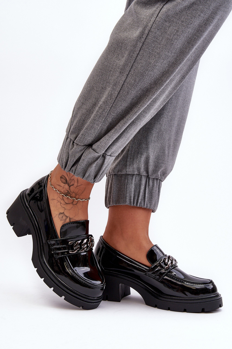 Półbuty Damskie Lakierowane Niski Obcas Czarne Blimma A706
