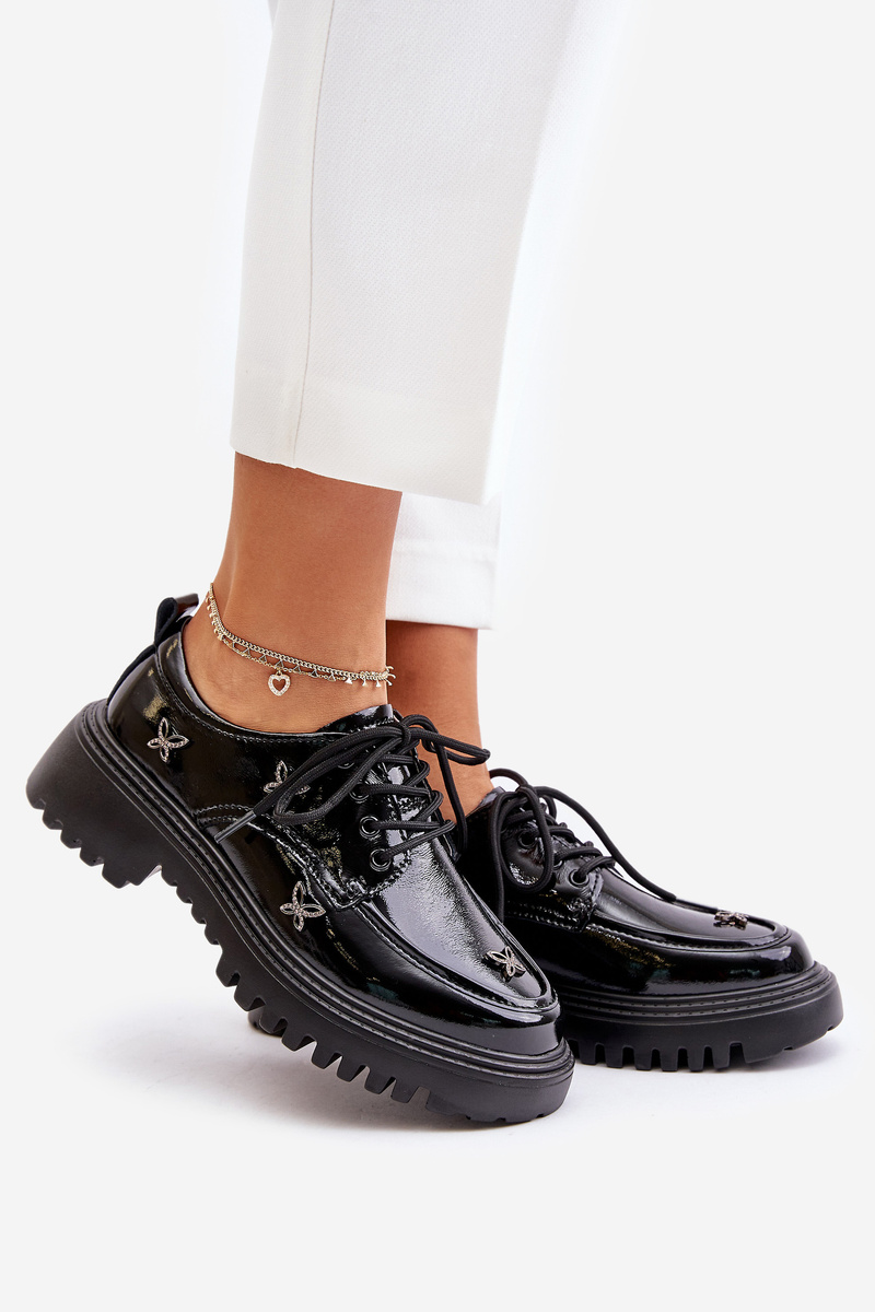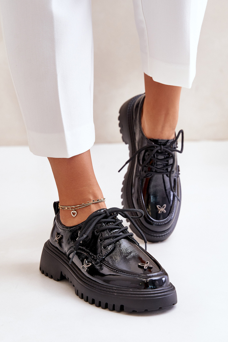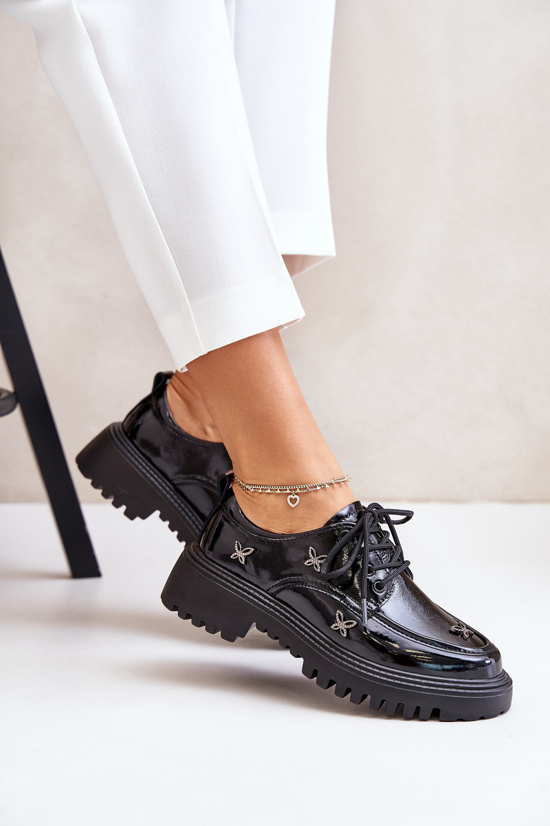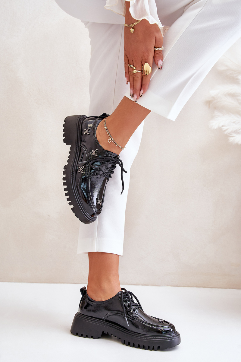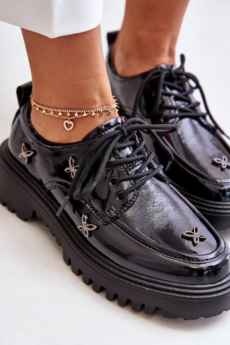 Półbuty Damskie Lakierowane Ozdoby Skóra Naturalna Czarne Artiker 55C1011