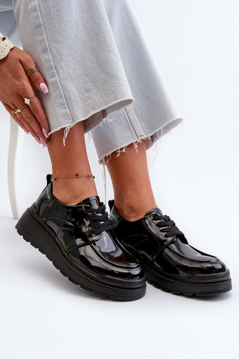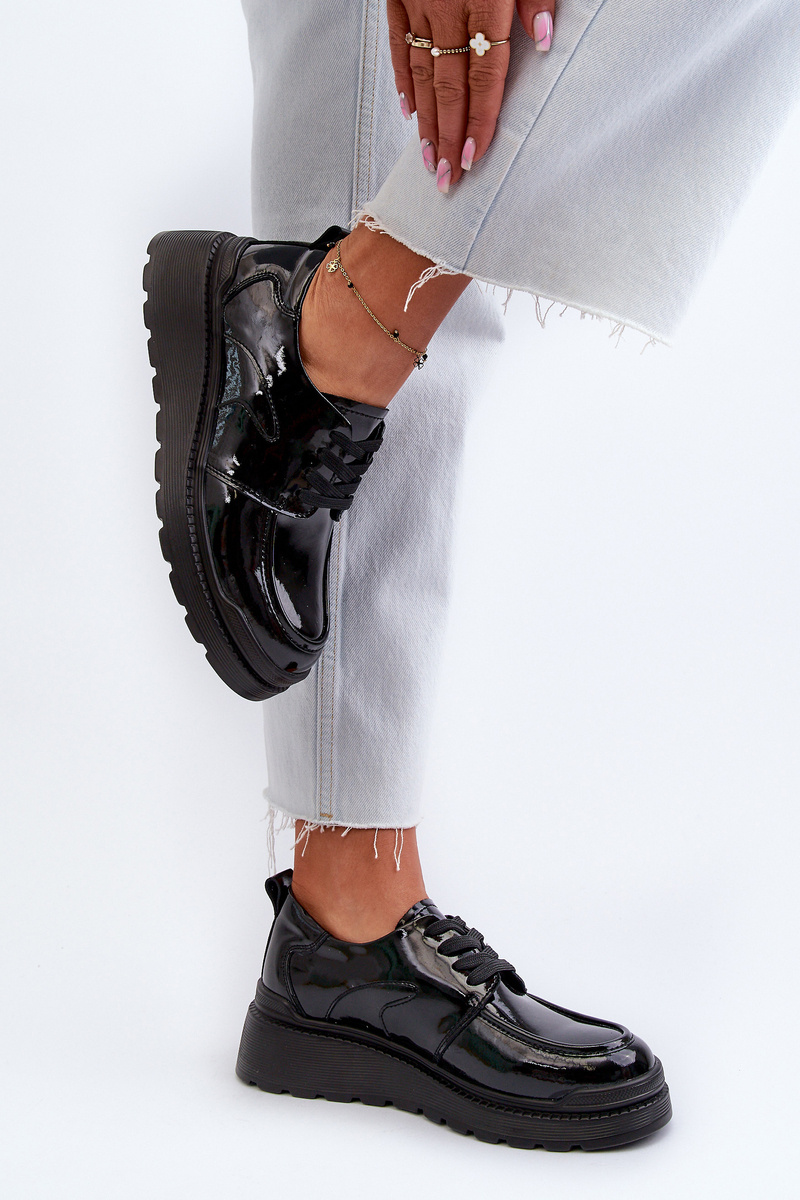 Półbuty Damskie Lakierowane Skórzane Czarne Scadaria 24PB18-6888